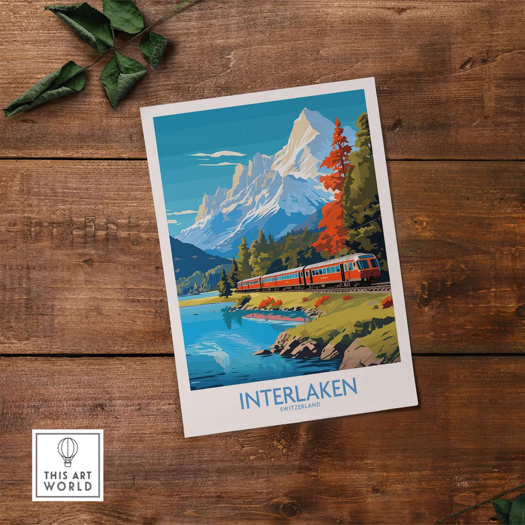 Discover the mesmerizing beauty of Interlaken, Switzerland with this stunning poster. Adorn your walls with vibrant colors and breathtaking scenery, capturing the essence of this picturesque destination. Let this poster transport you to new heights and inspire you to explore the wonders of Interlaken.