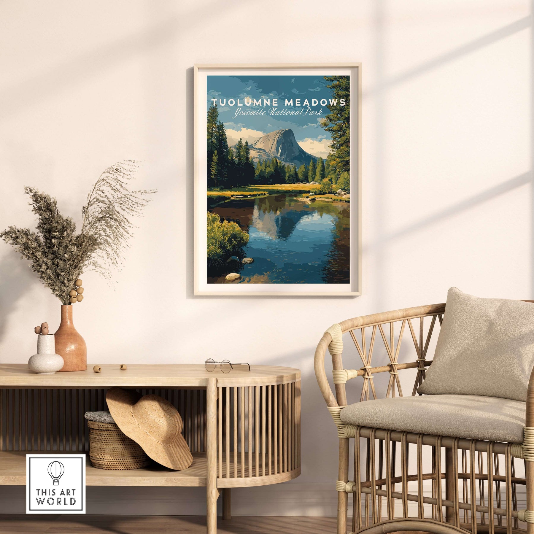 Tuolumne Meadows California Sierra Nevada Print | National Park Decor framed artwork in living room with serene landscape.