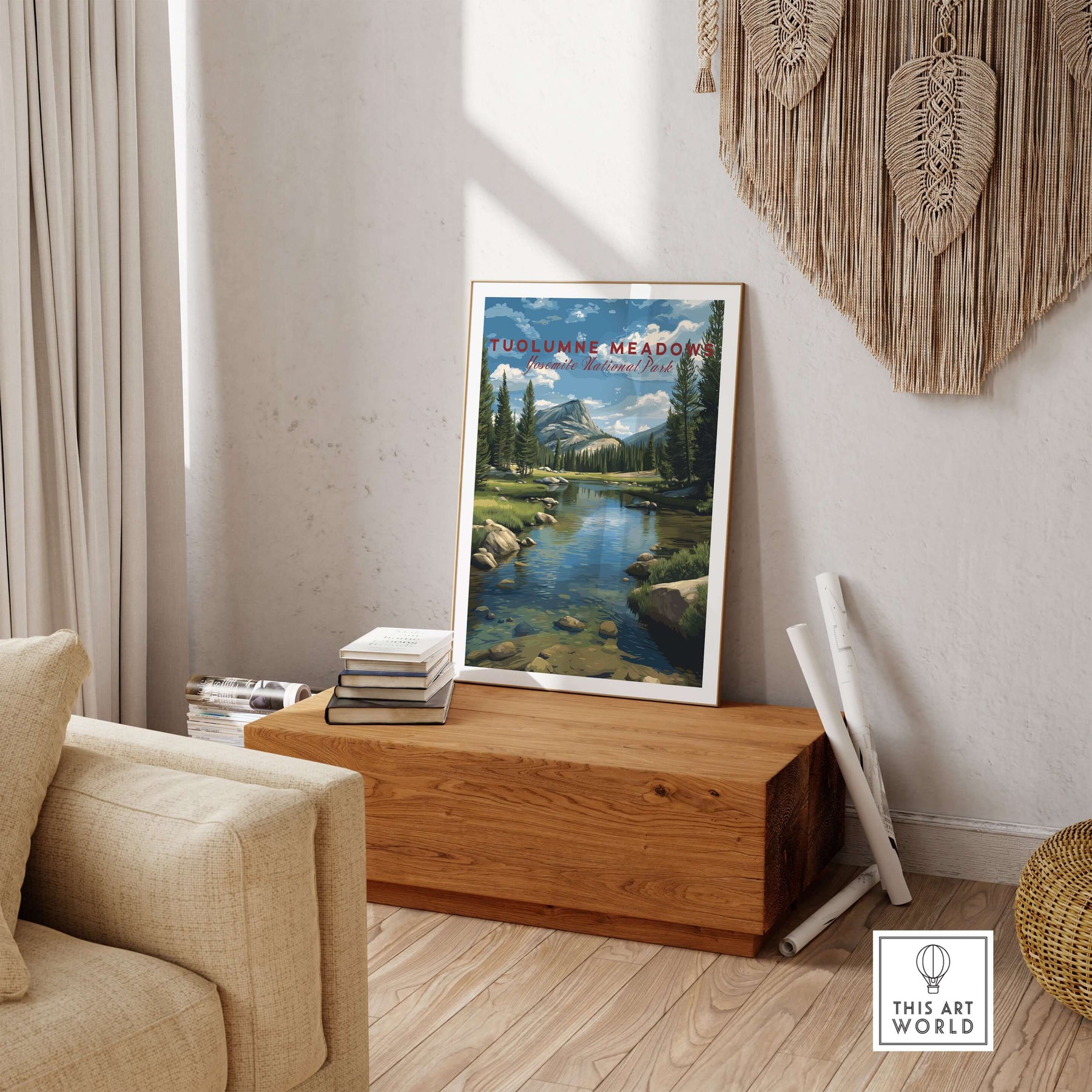 Tuolumne Meadows Print | Yosemite Wall Art Poster displayed in a stylish living room setting with natural decor.