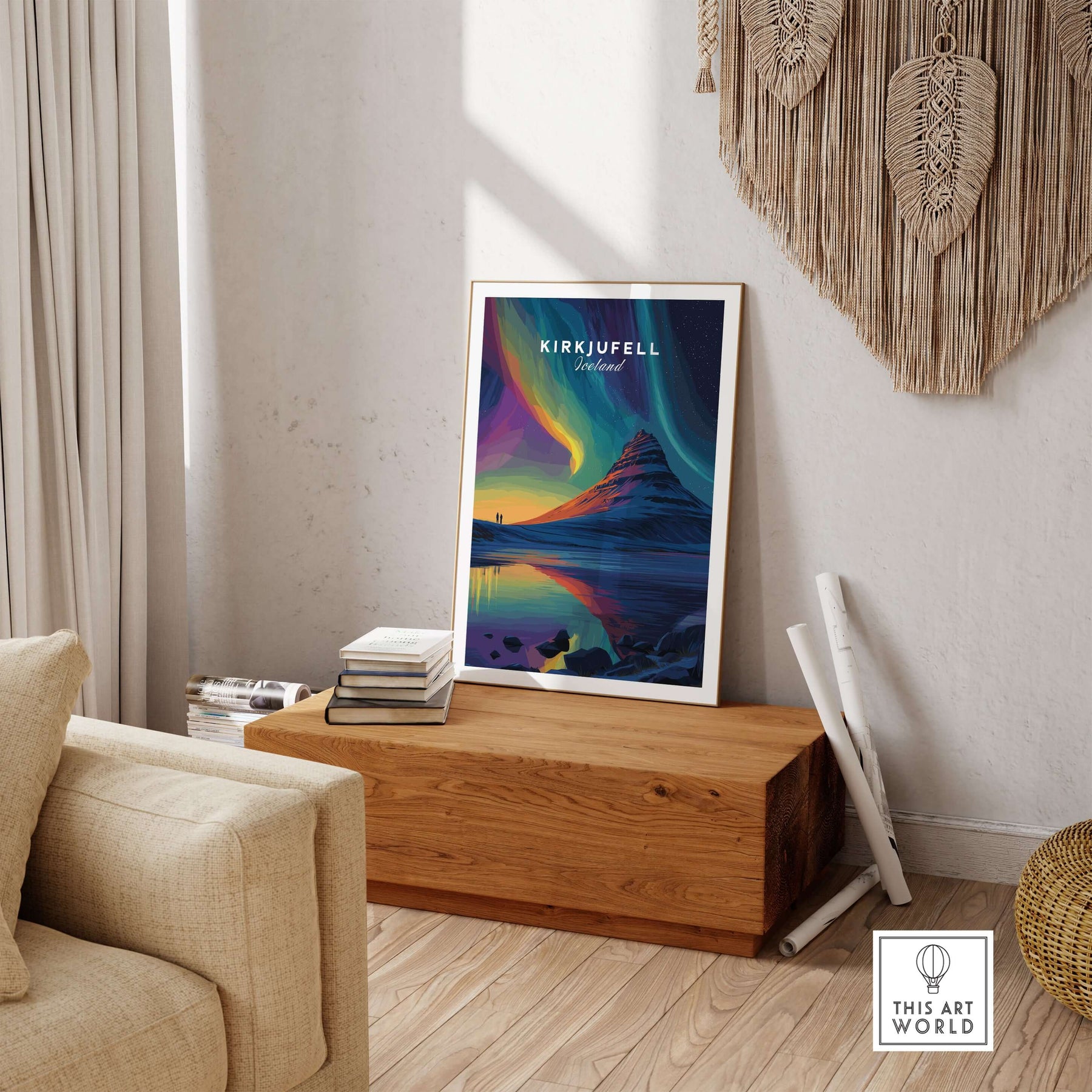 Kirkjufell Poster Snæfellsnes Print | Icelandic Travel Wall Art displayed on a stylish wall with other travel-inspired prints.