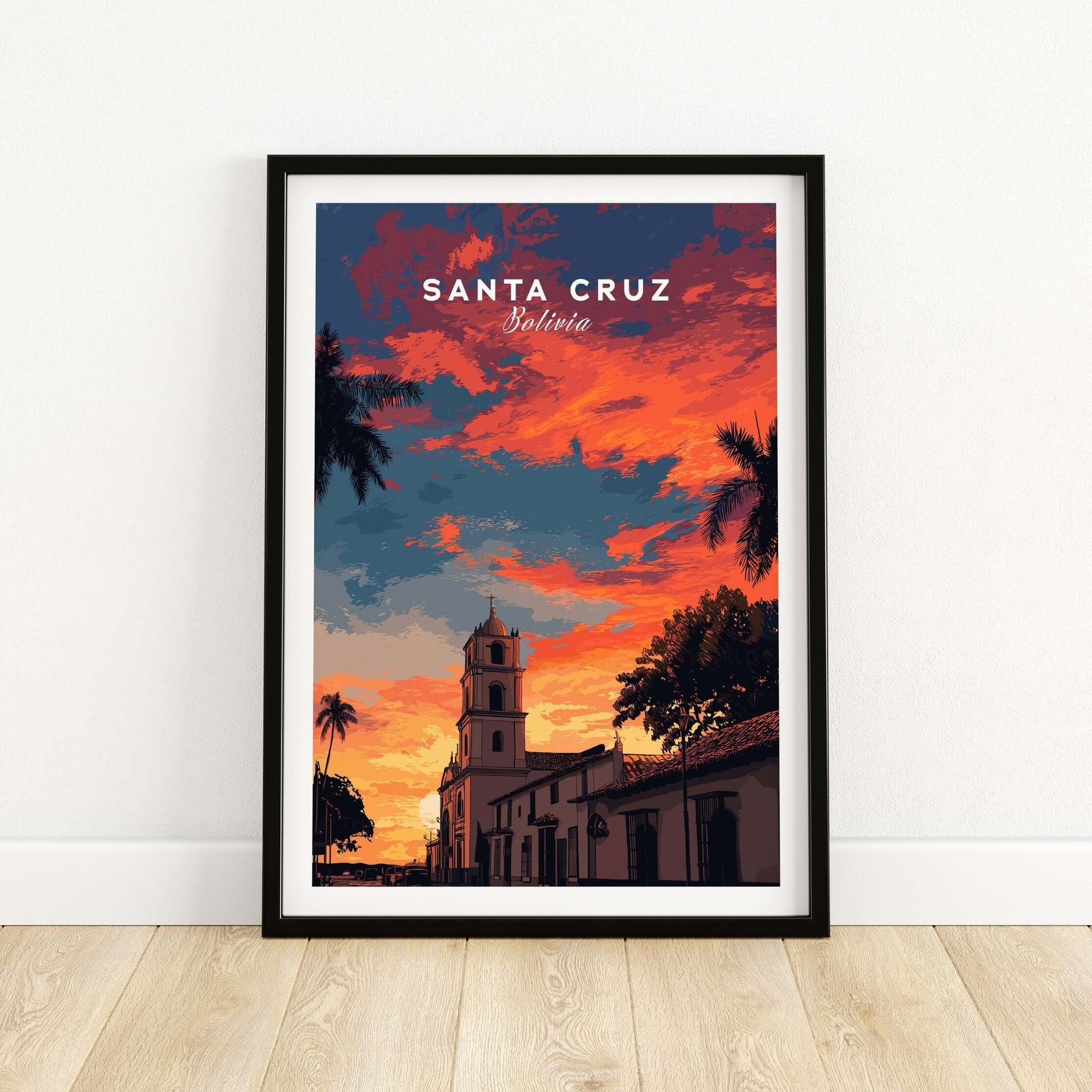 Santa Cruz South America Print | Bolivian City Wall Decor featuring a vibrant sunset and architectural details.