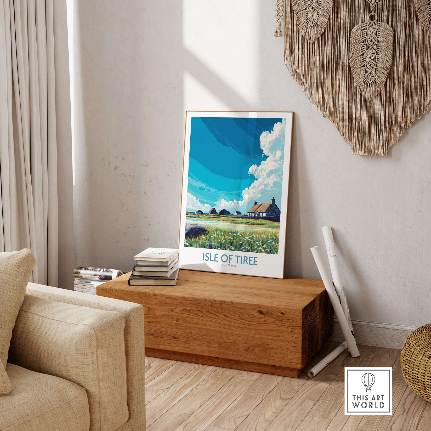 Isle of Tiree Scotland Art Print displayed in a stylish interior, showcasing its natural beauty and tranquility.