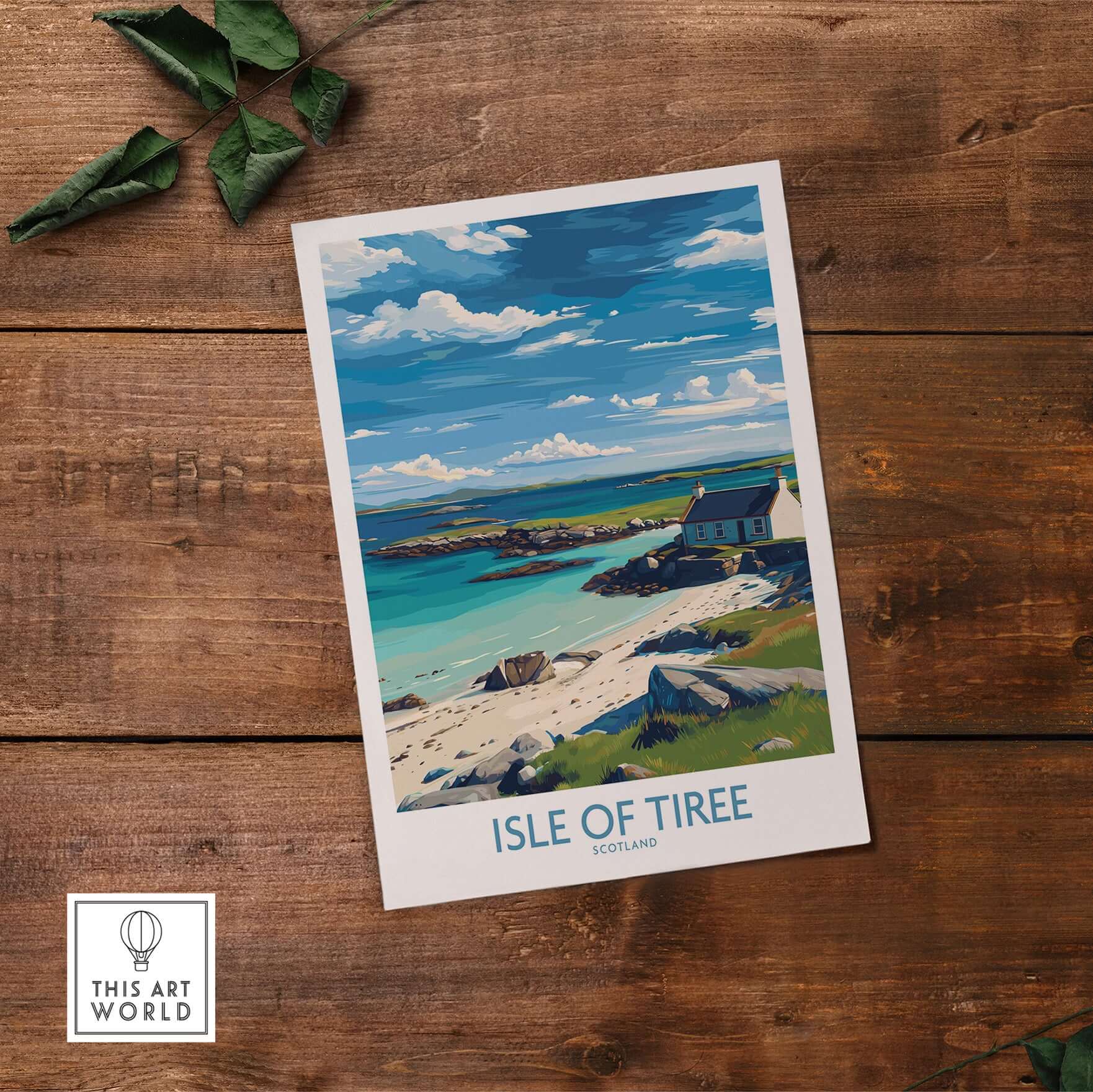 Isle of Tiree Scotland Print showcasing the island's serene landscape and tranquil atmosphere in a beautiful interior setting.
