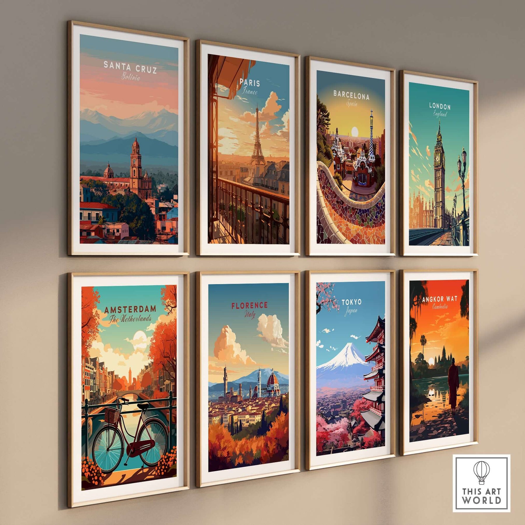 Santa Cruz City Print | Bolivian Home Wall Art displayed in a gallery wall with travel-themed artwork.