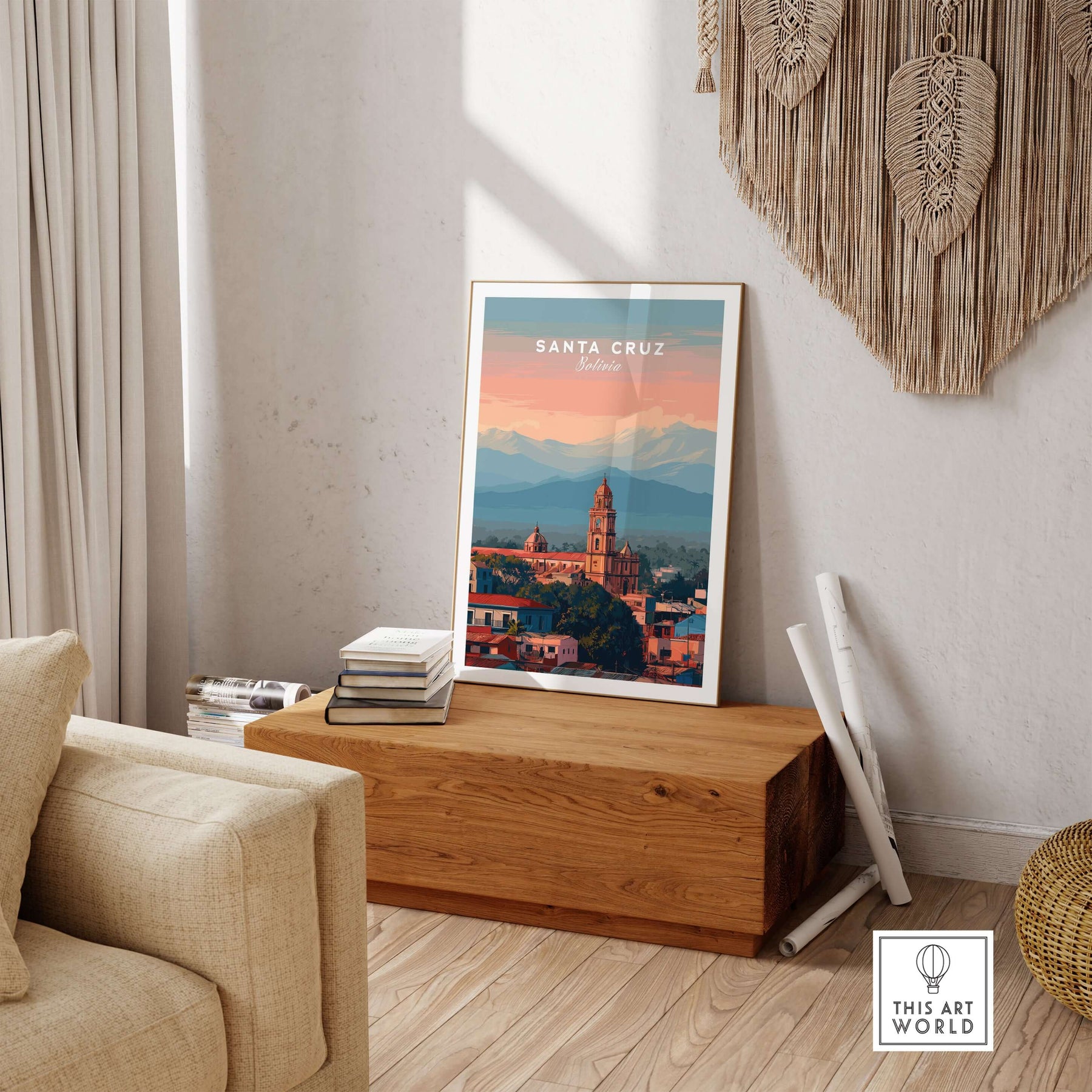 Santa Cruz City Print | Bolivian Home Wall Art in a stylish living room setting.
