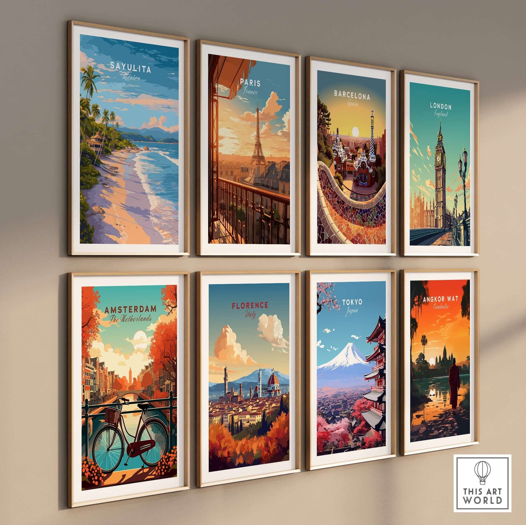 Sayulita Print | Coastal Home Wall Art featuring vibrant beach scenes in a stylish gallery wall display.