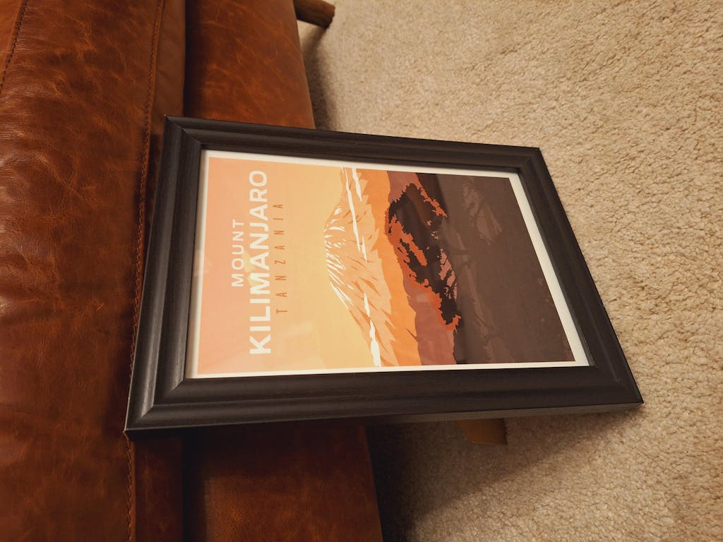 Kilimanjaro Print Wall Art Poster displayed in a stylish living room setting with natural light.