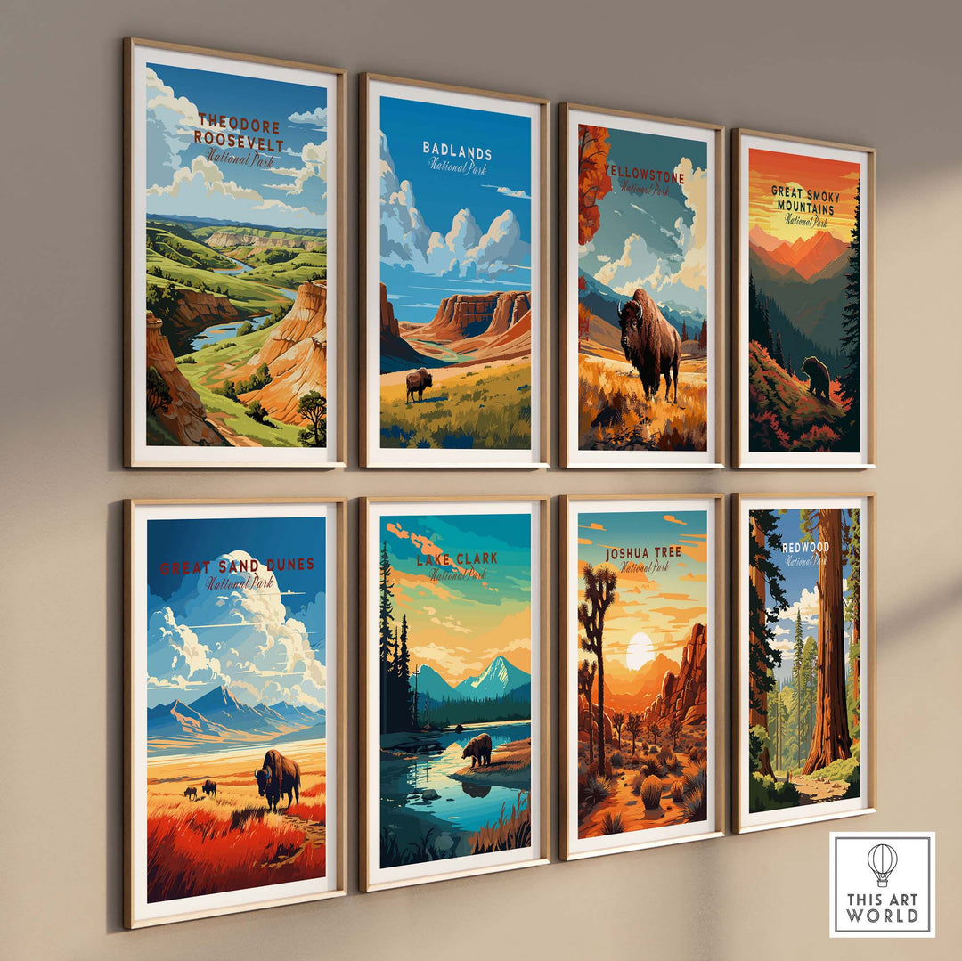 Bringen Sie die Schönheit des Theodore-Roosevelt-Nationalparks mit diesem hochwertigen Poster in Ihr Zuhause! Wählen Sie zwischen gerahmten und ungerahmten Optionen, um die perfekte Passform für Ihre Wand zu finden. Mit lebendigen Farben und präzisen Details werden Sie das Gefühl haben, die wilde Schönheit des Parks fast berühren zu können. Verleihen Sie Ihrem Raum noch heute einen Hauch von Abenteuer!