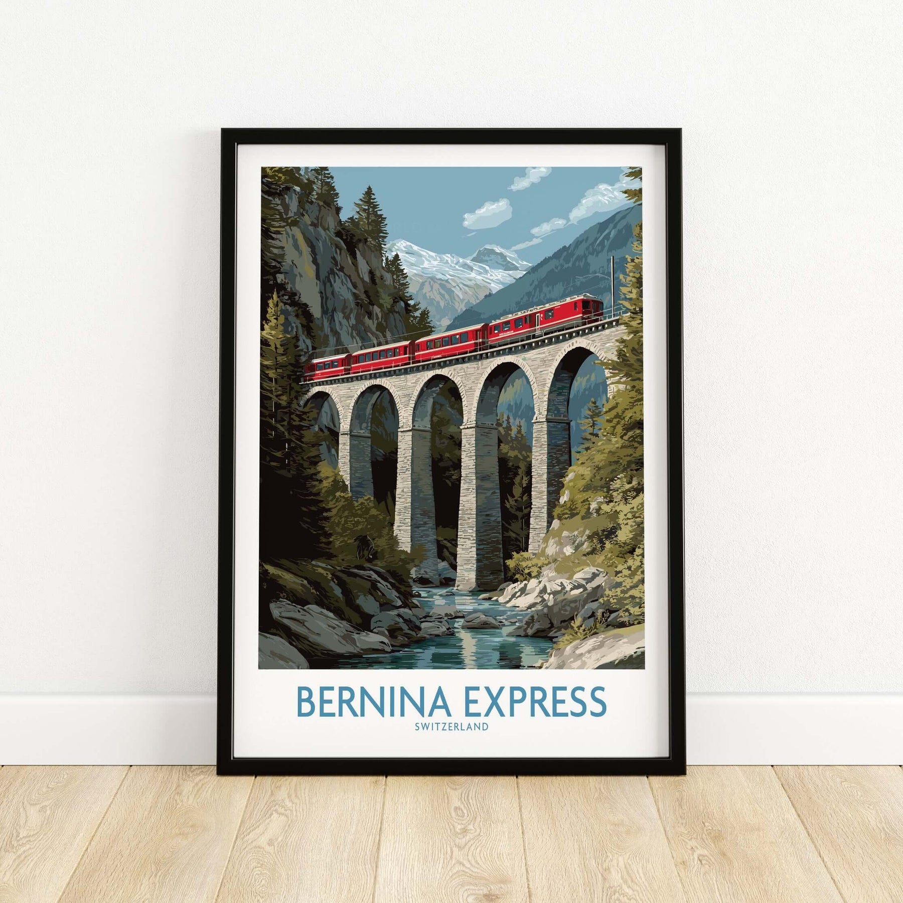 Celebrate Swiss engineering and natural beauty with this Bernina Express Art Print featuring the iconic Landwasser Bridge. This striking poster captures the train gracefully crossing the famous stone viaduct surrounded by dramatic alpine scenery. Perfect for train enthusiasts and lovers of breathtaking landscapes, it brings a sense of wonder and elegance to any room. Elevate your décor with this timeless tribute to one of Switzerland’s most remarkable railway landmarks.