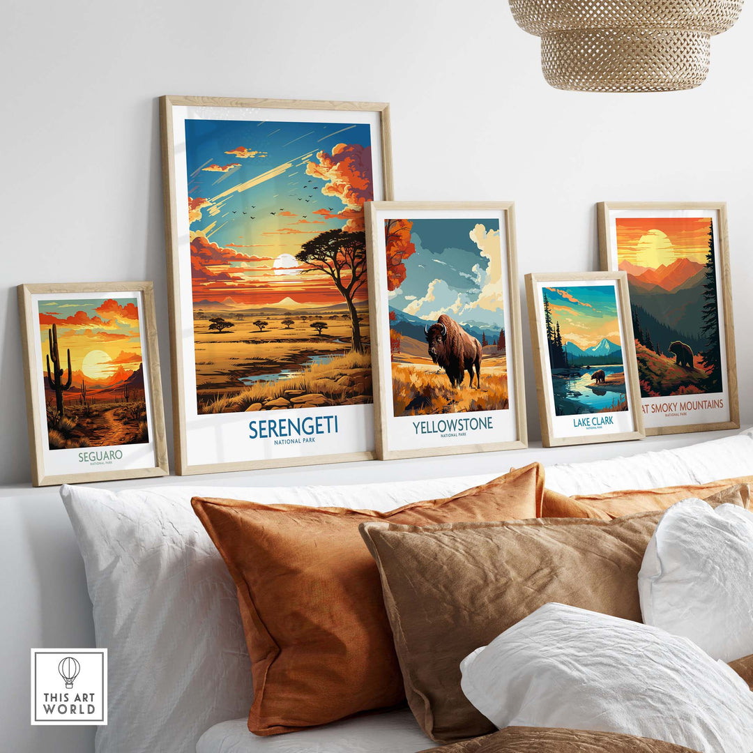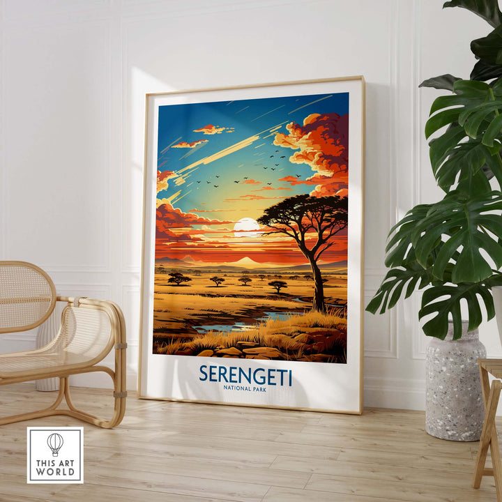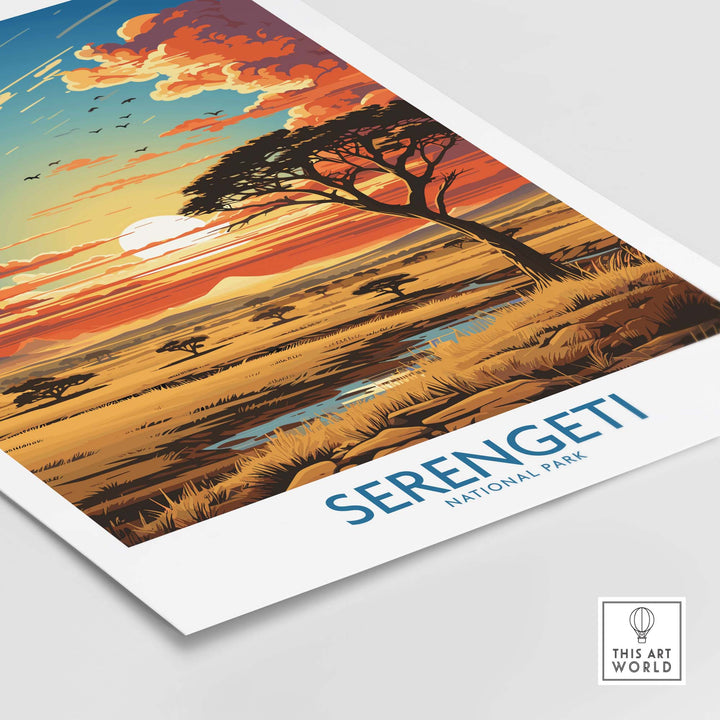 Discover the adventure of the Serengeti with this museum quality travel print! Perfect for giving as a gift, this high quality print captures the beauty of the African Savannah, inspiring discovery and exploration. Get lost in the wonder of nature with Serengeti Travel Print!