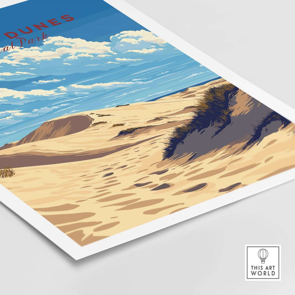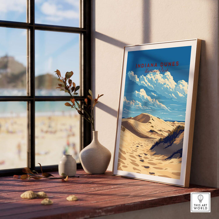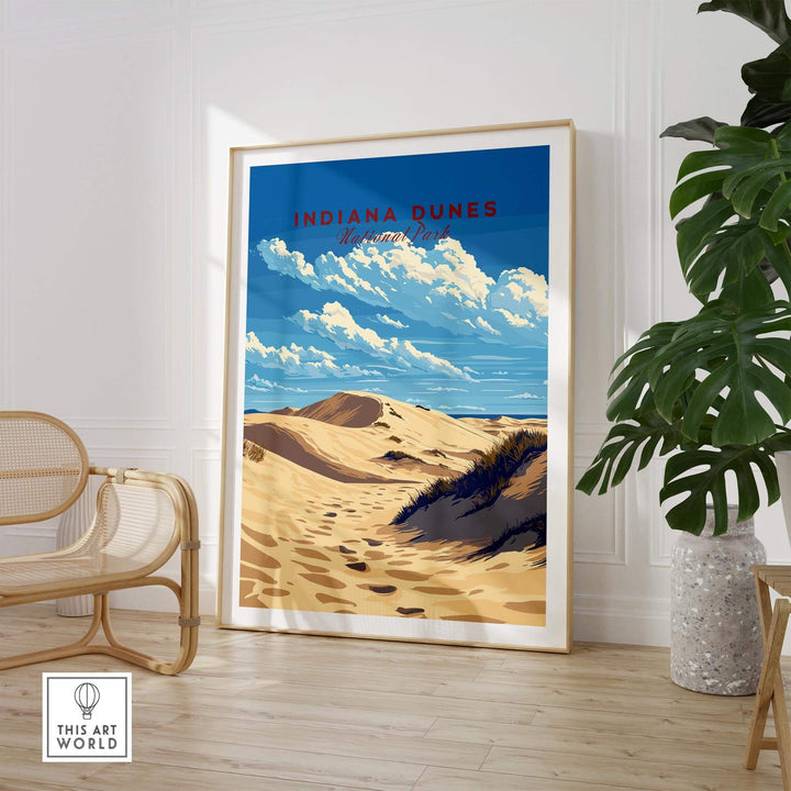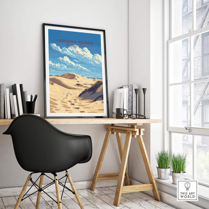 Experience the breathtaking beauty of Indiana Dunes National Park with this stunning poster. Perfect for nature lovers and outdoor enthusiasts, it showcases the park's diverse landscapes and unique wildlife. Hang it in your home or office and be inspired by the wonders of this national treasure.