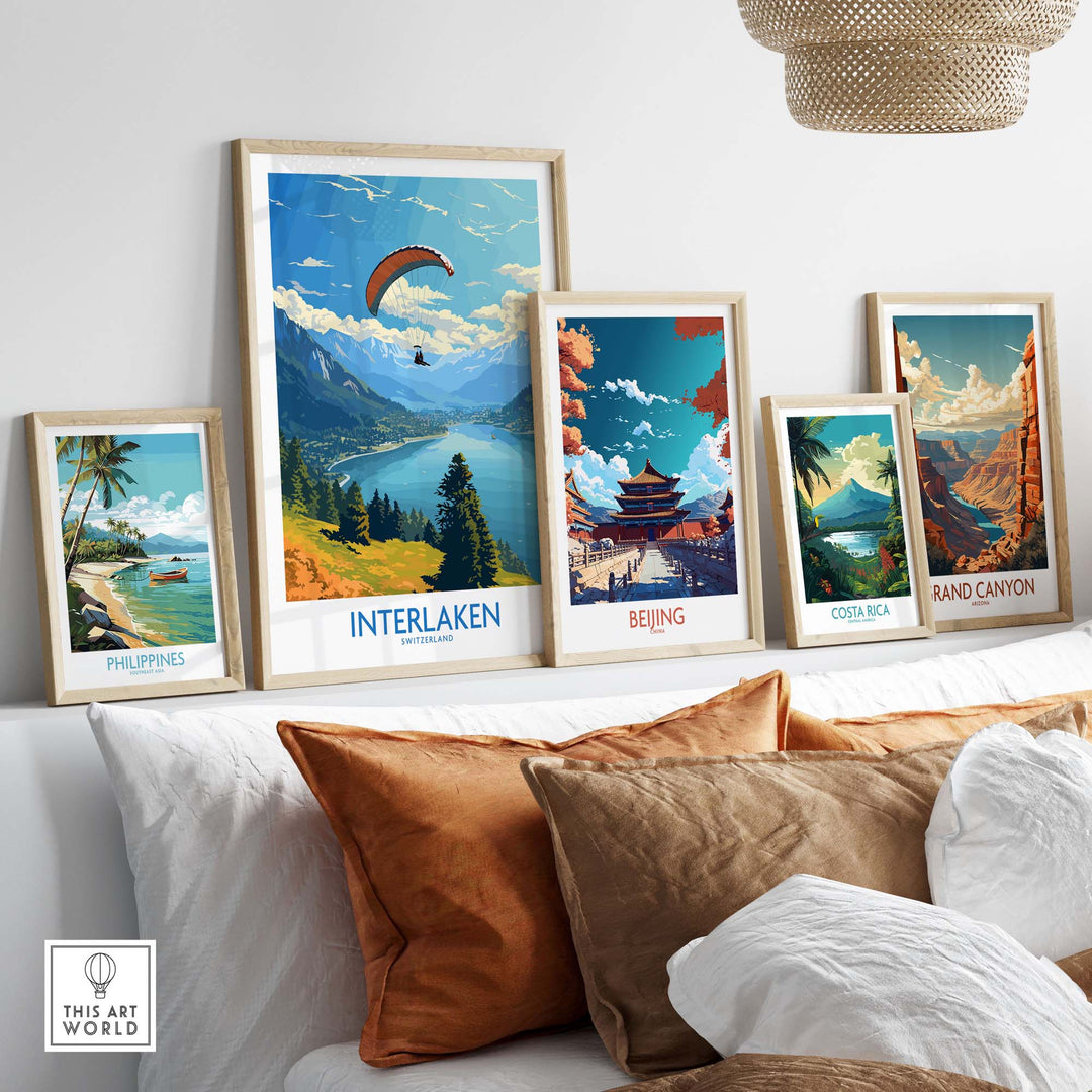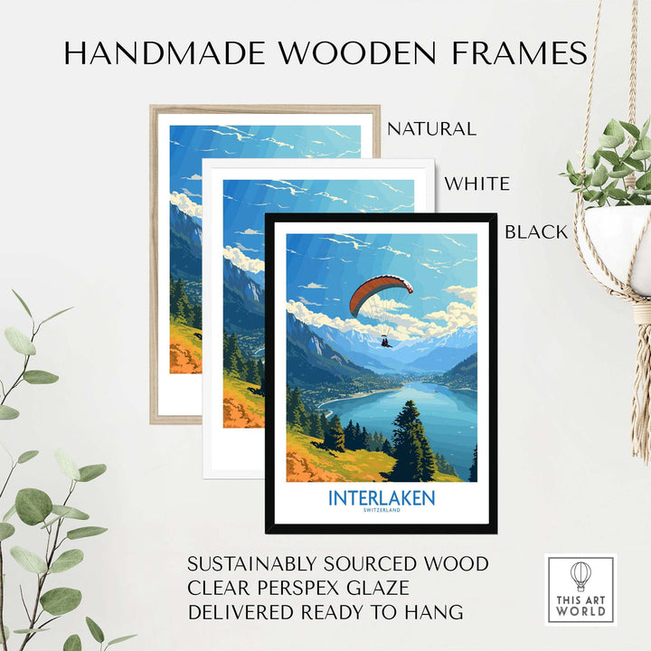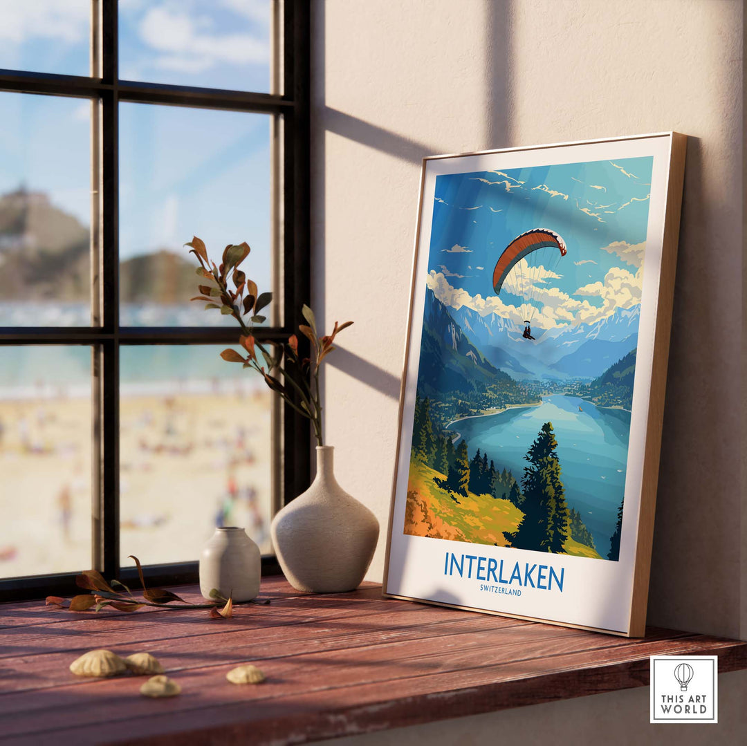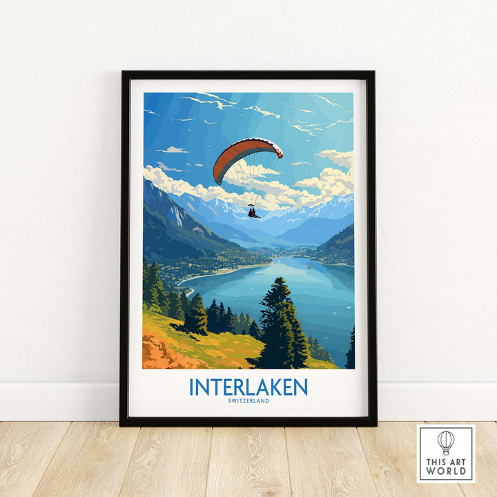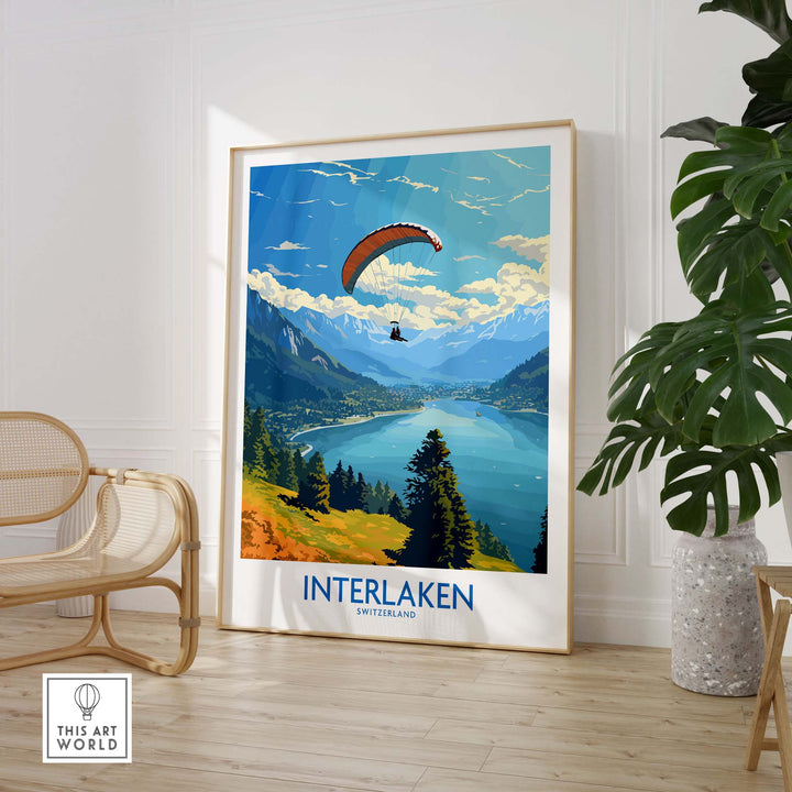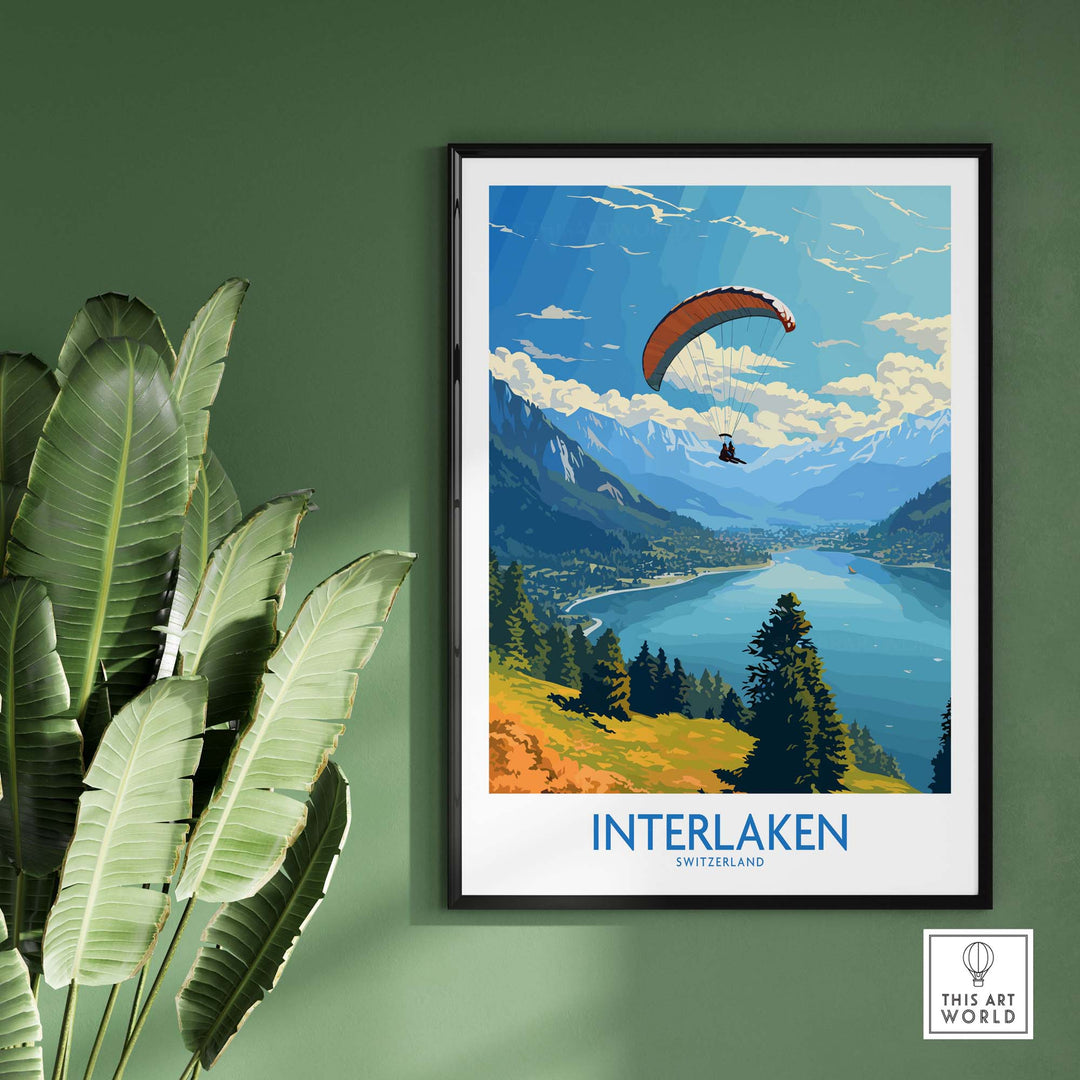 Unlock the beauty of Interlaken with this stunning wall art print. Featuring a vibrant design with bold colors, this print will bring life and energy to any room. Enjoy a touch of nature with this exciting piece of art.