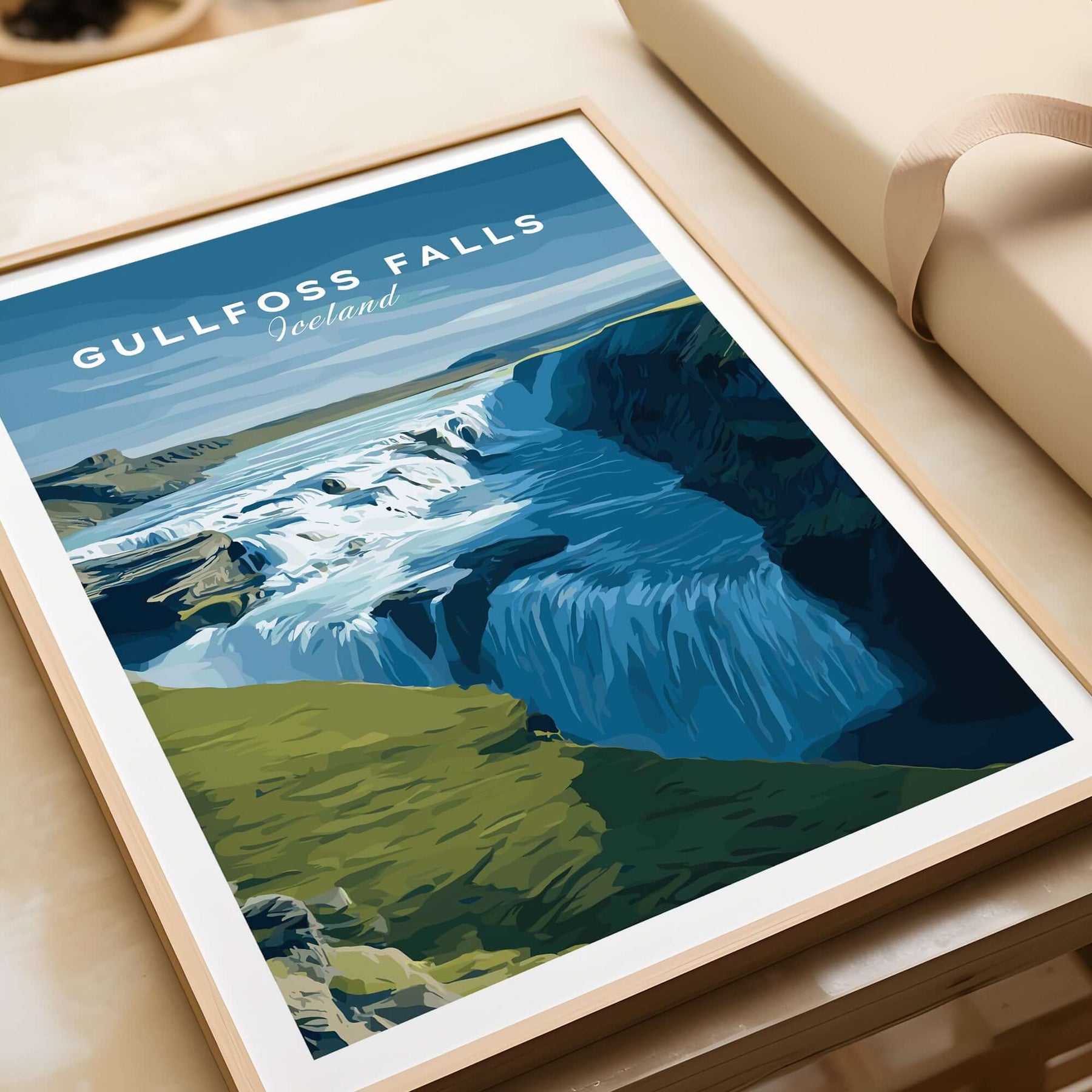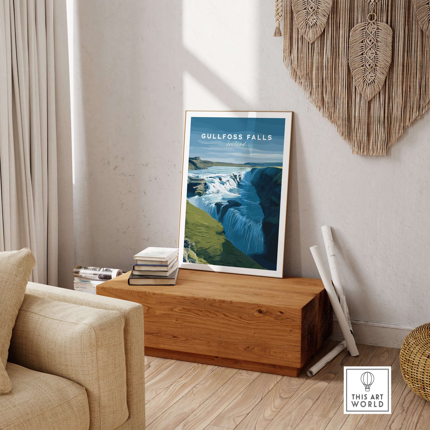 Gullfoss Falls Iceland Print | Icelandic Nature Wall Art displayed in a stylish home setting.