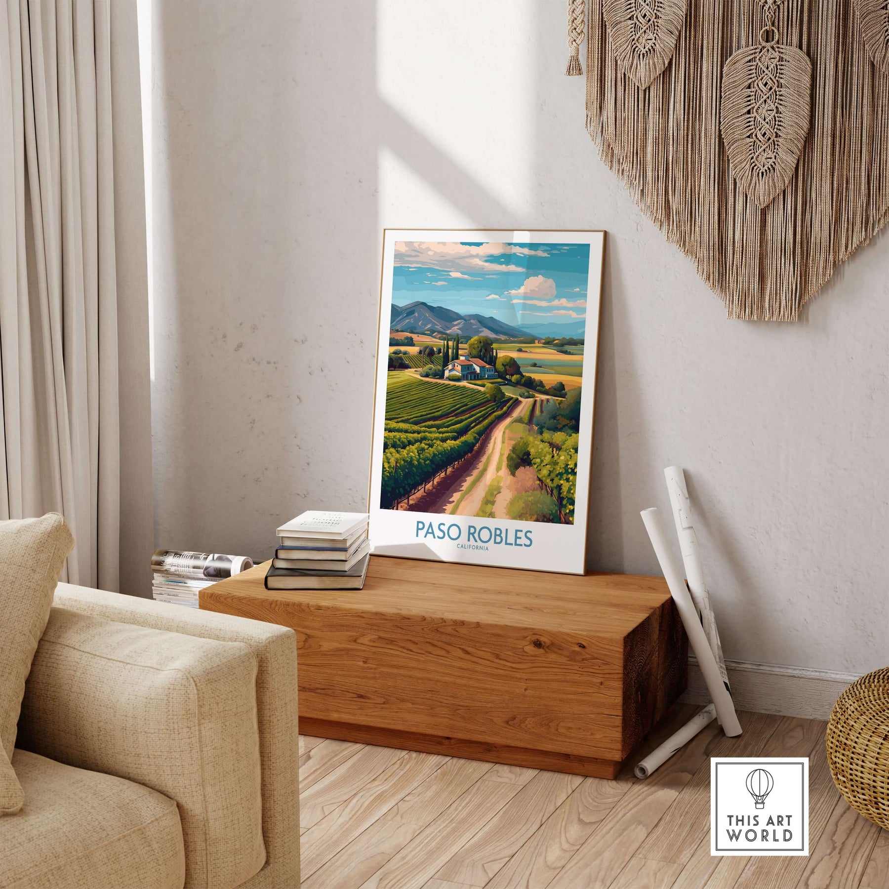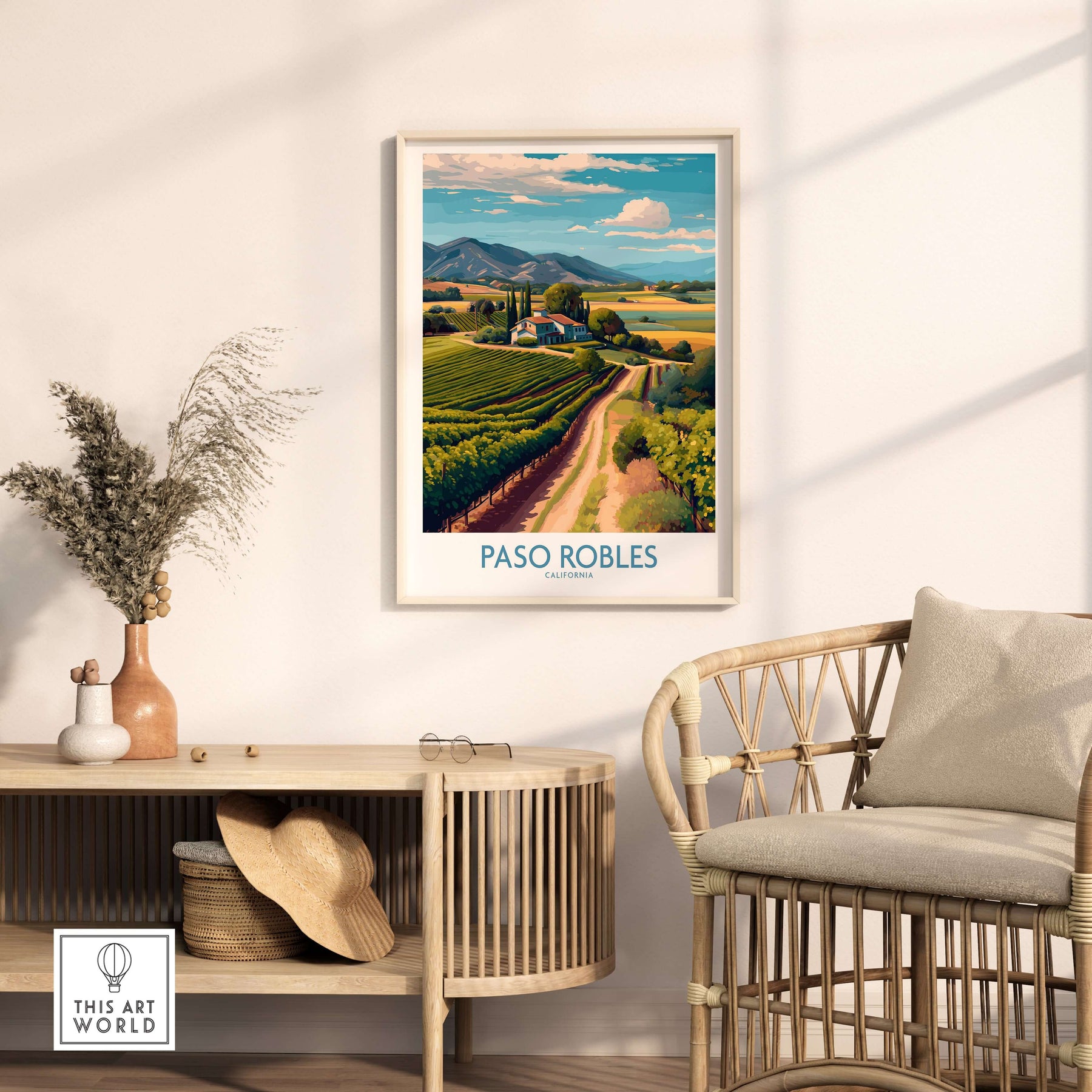 Paso Robles California Vineyard Art Print | Wine Region Landscape Poster displayed in a stylish home setting.