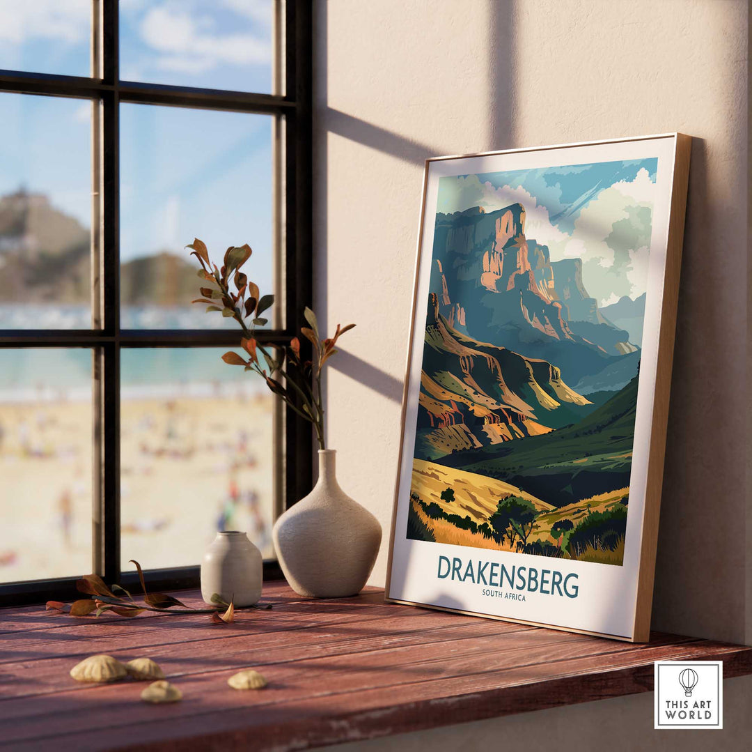 Capture the magnificence of the Drakensberg mountains in your space with our Drakensberg Poster. Displaying the breathtaking scenery of KwaZulu-Natal, South Africa, this poster will transport you to another world. Perfect for those who crave adventure and want to add a touch of inspiration to their surroundings.