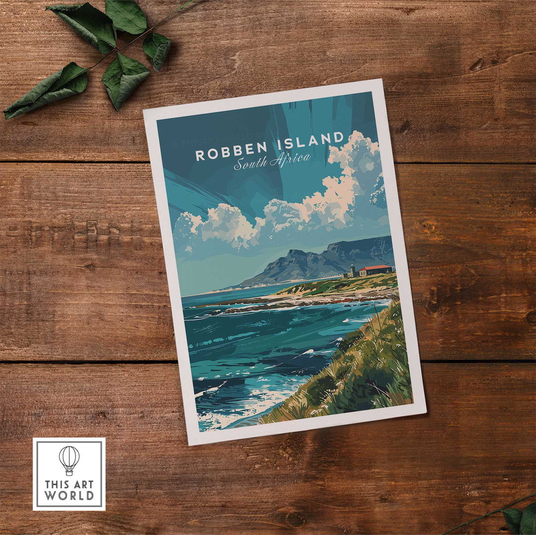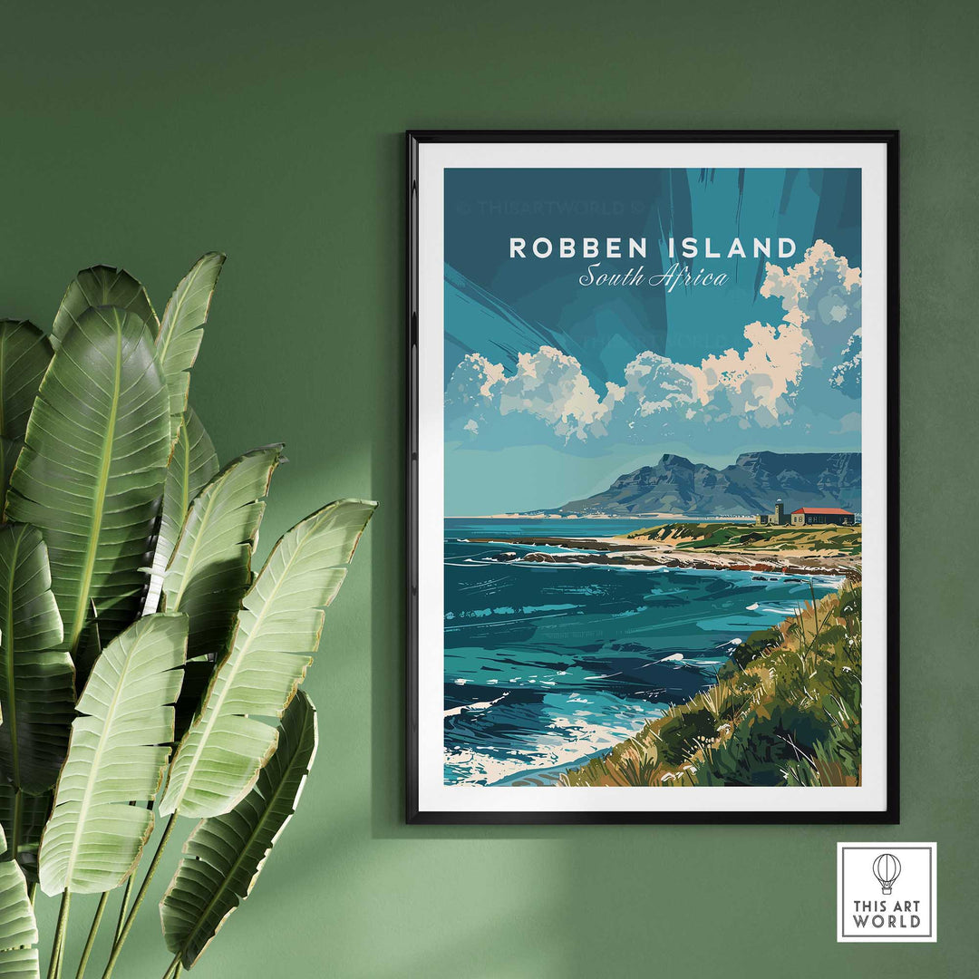 Elevate your home decor with our Robben Island Wall Art Print. This stunning print features the iconic Cape Town and Table Mountain, bringing a touch of South African beauty to any room. Show your love for travel and add a unique statement piece to your wall.