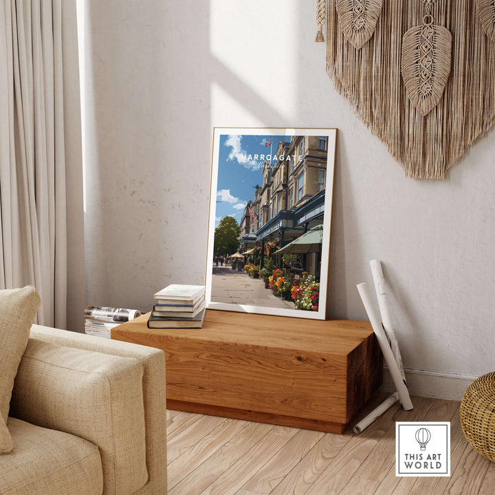 Harrogate Street View Print | Yorkshire Home Decor displayed in stylish living room interior.