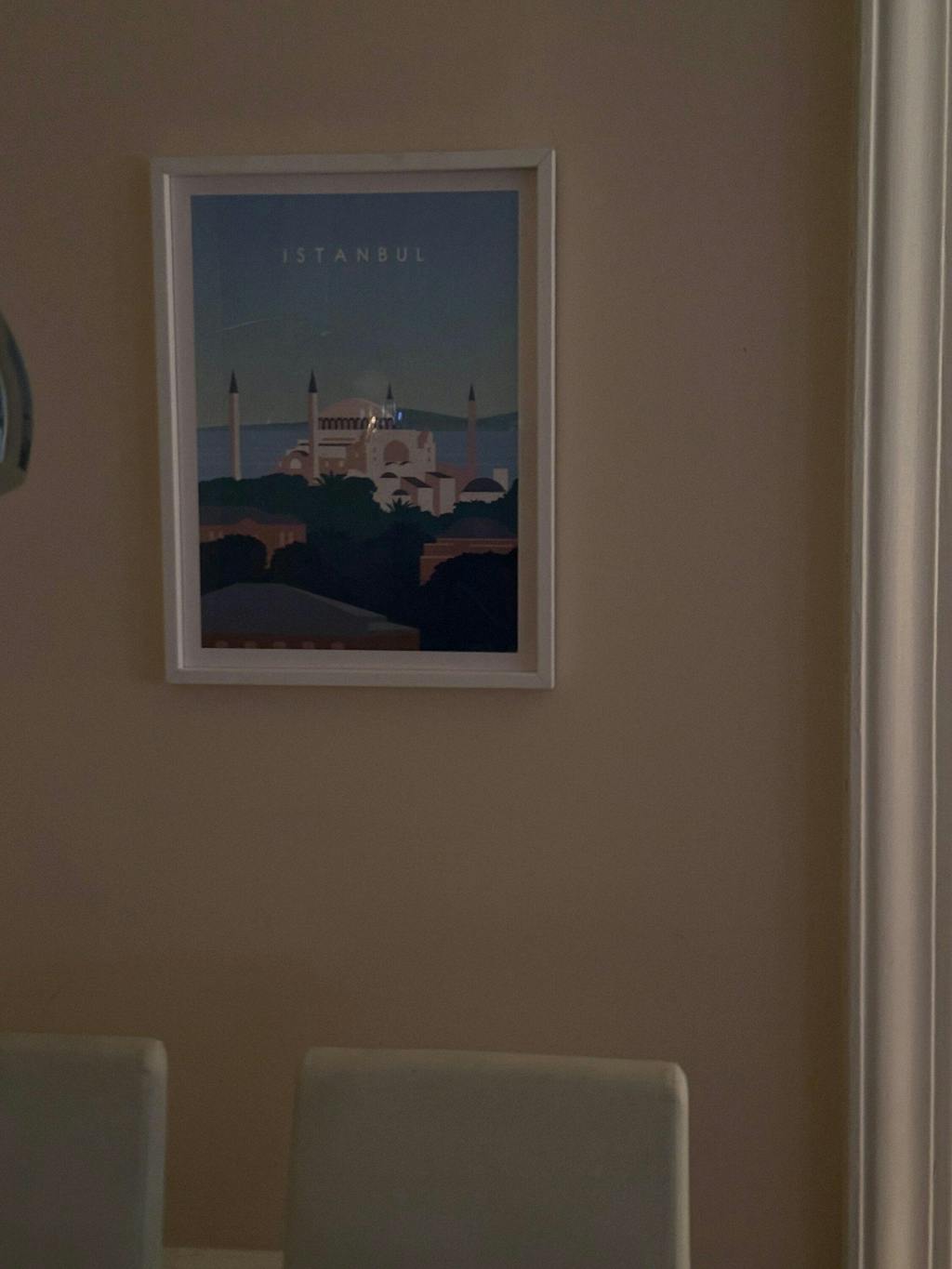 Istanbul Print Wall Art Poster featuring Blue Mosque in stylish home decor setting.