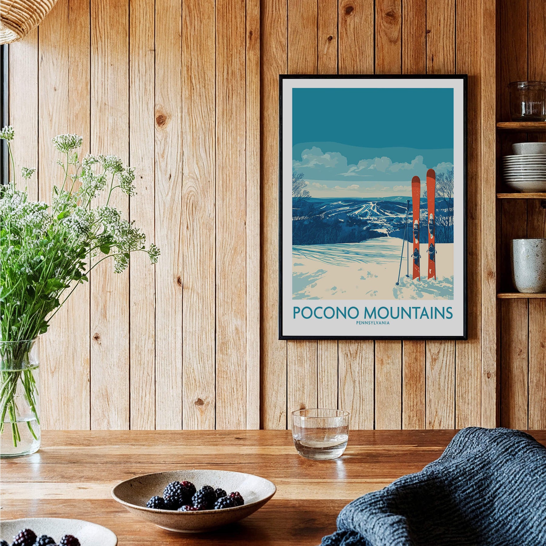 Pocono Mountains Ski Retreat Wall Art - Pennsylvania Mountain Decor displayed in a cozy interior.