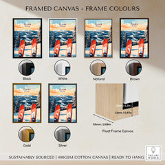 The best of both worlds - canvas texture with frame elegance. The 5mm / 0.2in gap between the frame and the stretched canvas gives a 'floating' effect.