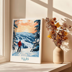 Bring the beauty of the Ylläs ski resort into your home with this stunning Norway wall art. The artwork showcases a ski chairlift making its way up the mountain. It's the perfect gift for those who love the outdoors and enjoy the thrill of winter adventures.