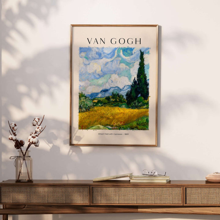 Vincent van Gogh Wheat Field with Cypresses art print displayed in a stylish interior setting.
