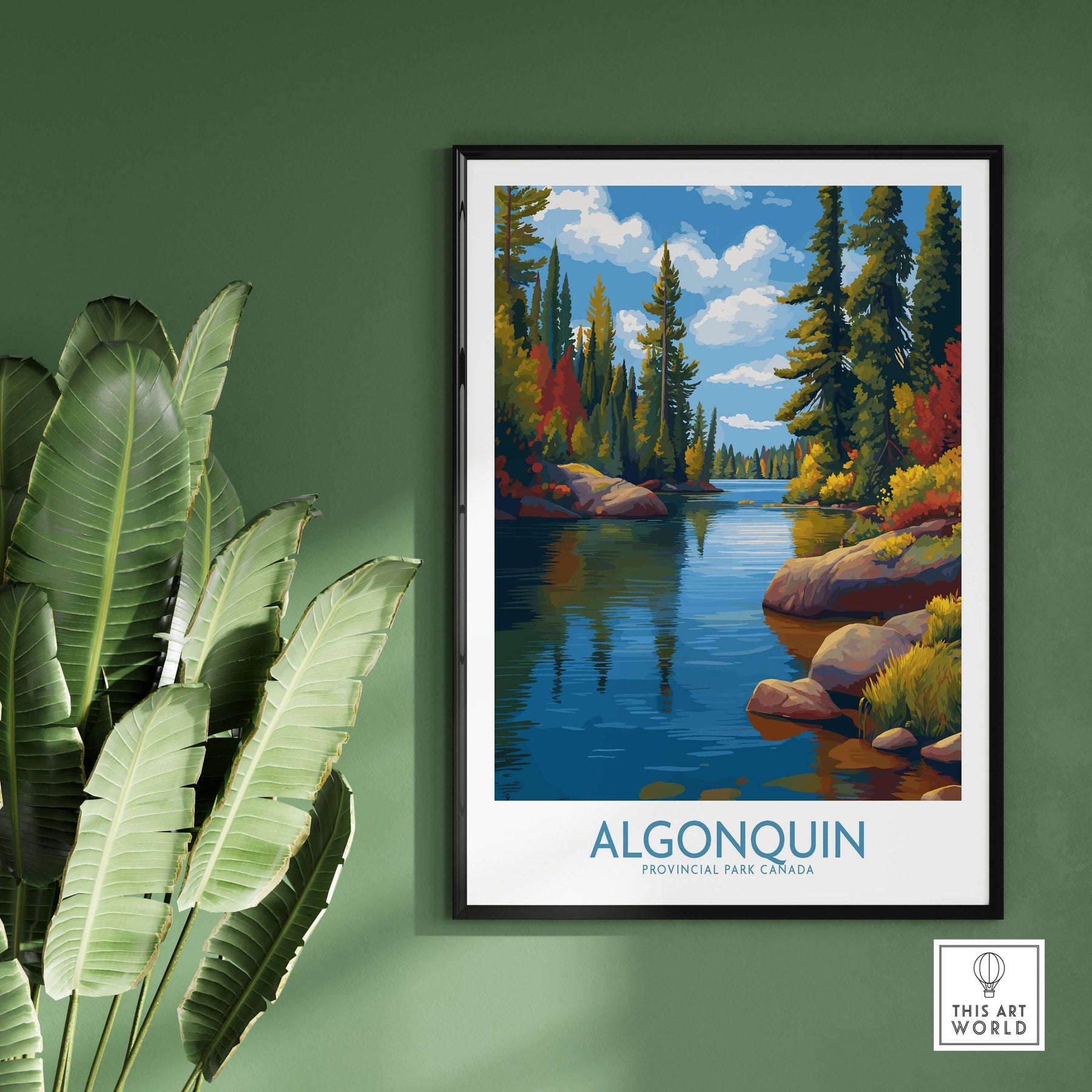 Algonquin Autumn Forest Art Print | Canada Fall Wilderness Poster in a cozy home setting with lush greenery.