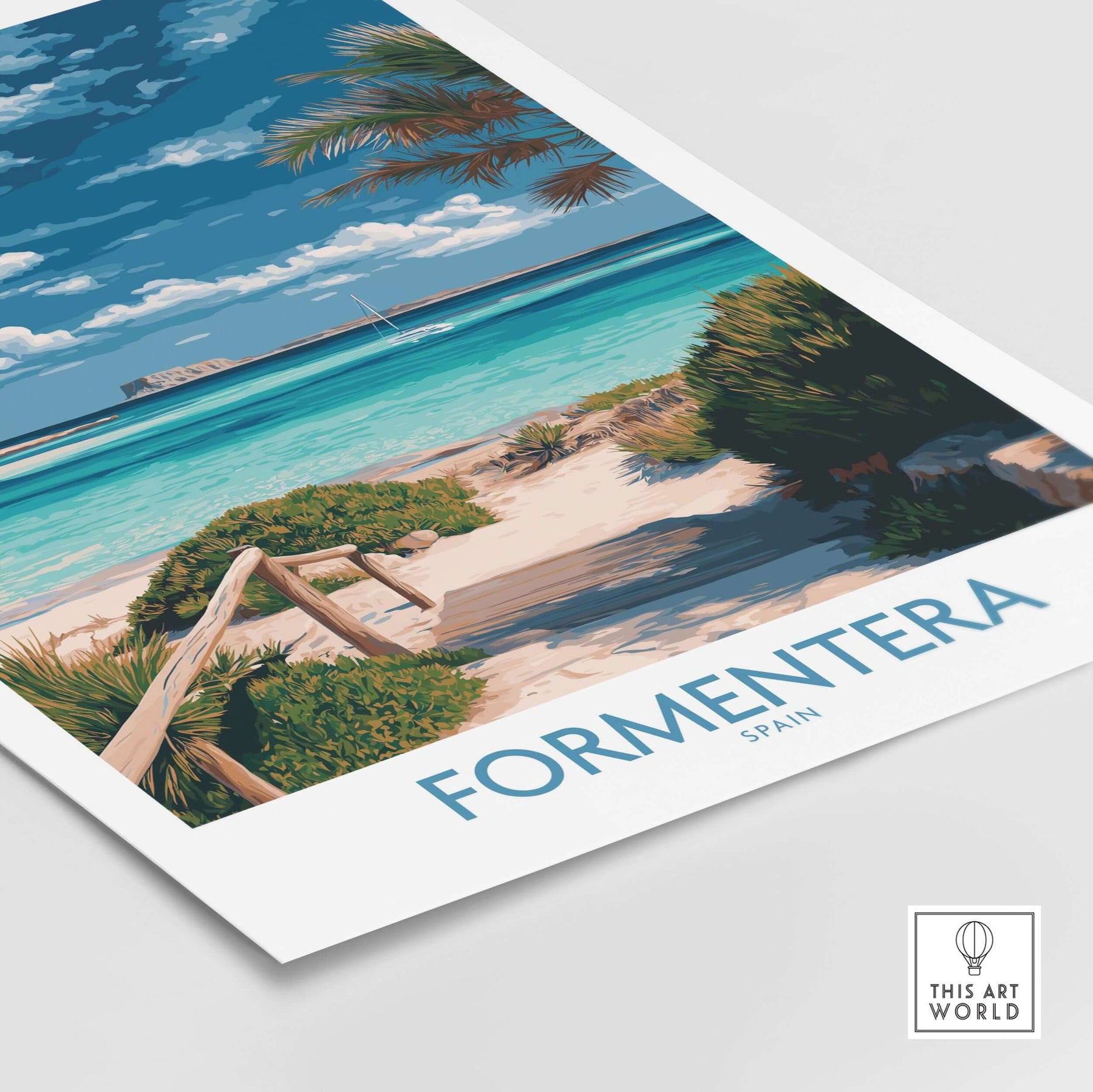 Formentera Spain Art Print | Tropical Beach Travel Poster featuring pristine sands and turquoise waters.