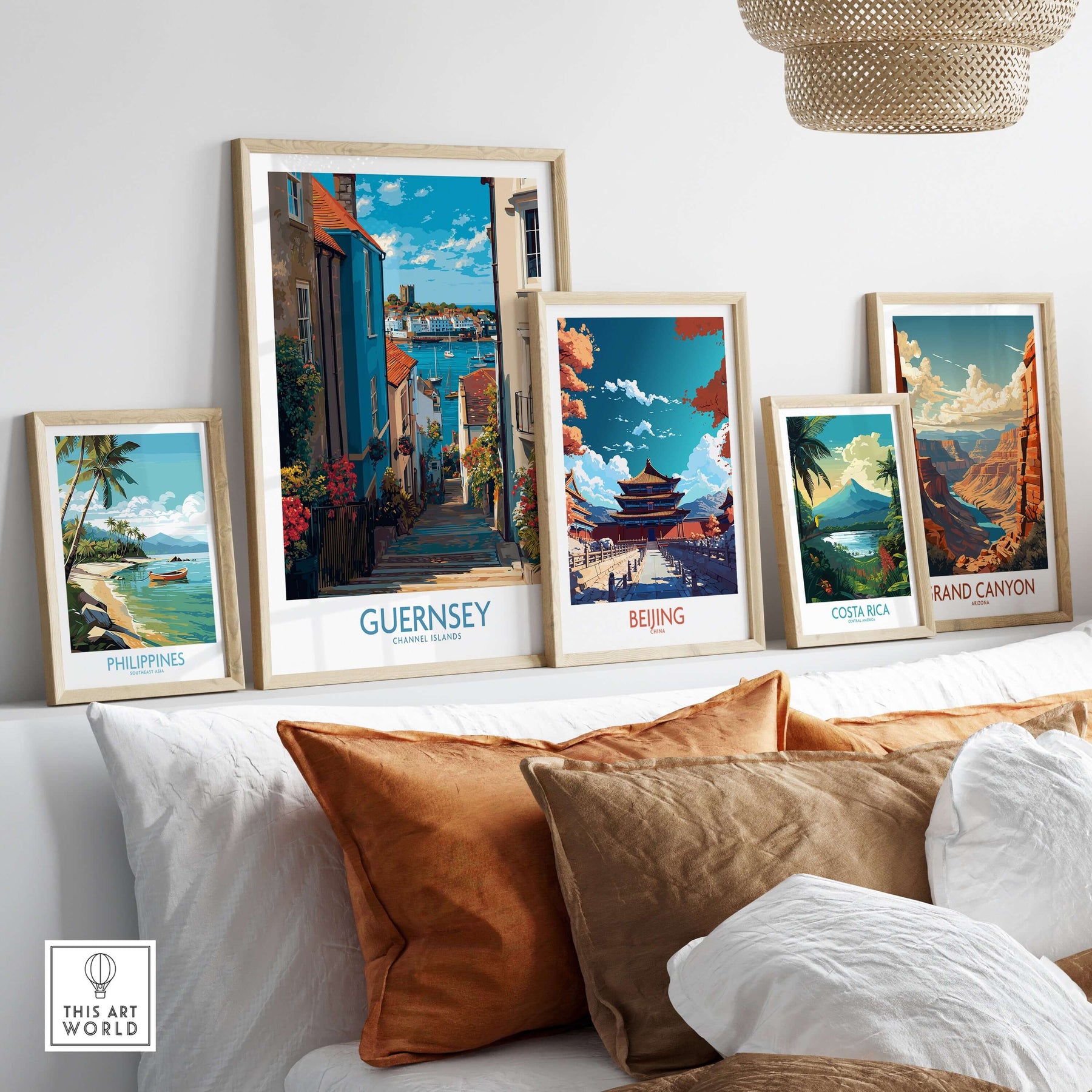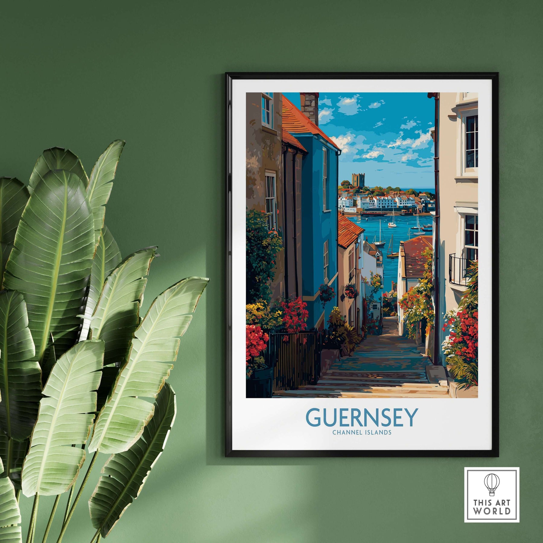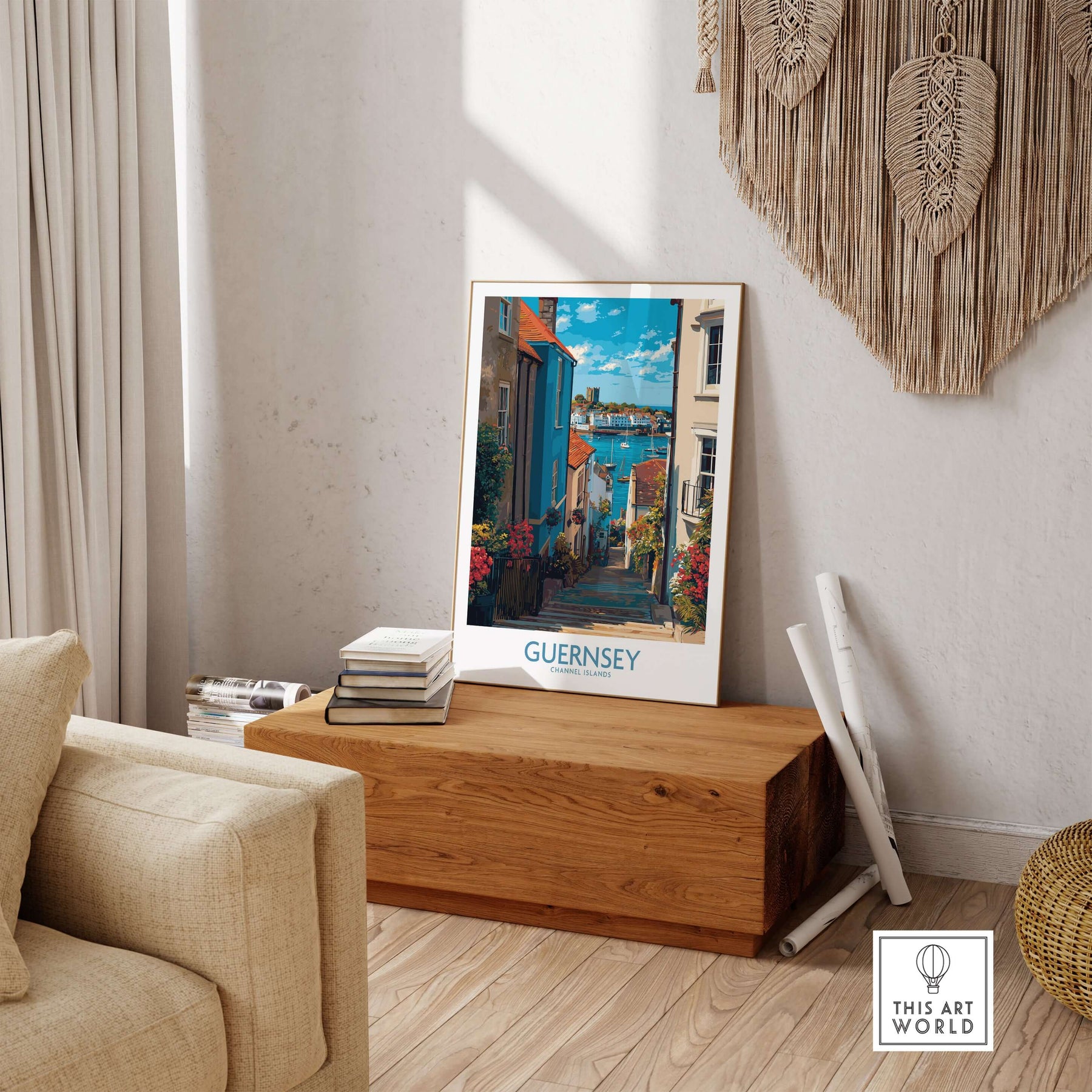 Guernsey St Peter Port Castle Cornet Art Print | Colourful Town Poster displayed among other travel art prints.