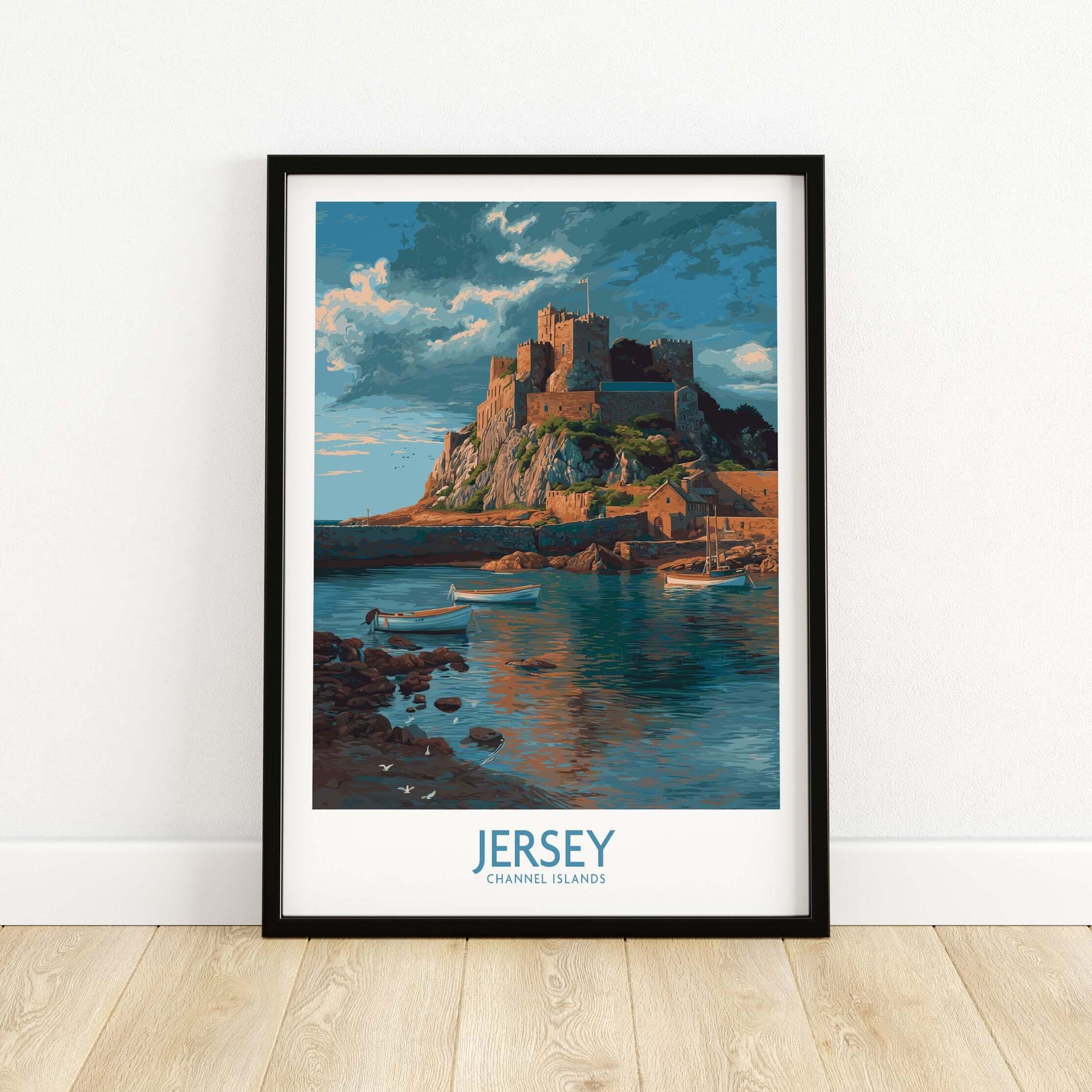 Experience the historic grandeur of Jersey’s Mont Orgueil Castle with this captivating art print. Showcasing the iconic fortress perched above the sea, this poster captures the strength and timeless beauty of one of the Channel Islands’ most treasured landmarks. Perfect for history enthusiasts and lovers of dramatic coastal views, it adds a bold and inspiring accent to any room. Bring the spirit of Jersey’s rich heritage into your home with this stunning artwork.