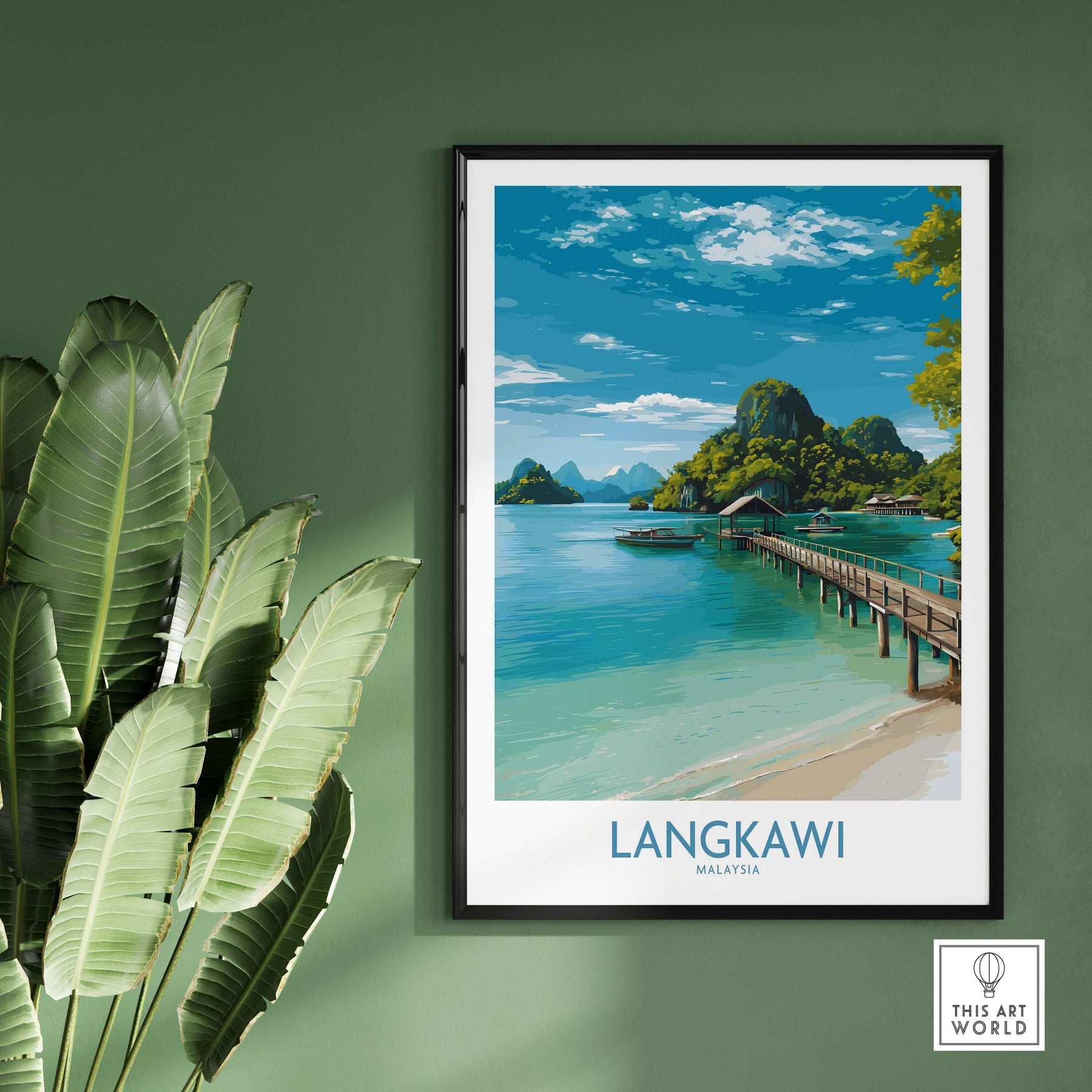 Bring the tropical allure of Langkawi, Malaysia, into your home with this vibrant island travel art print. Featuring lush landscapes and sparkling waters, this poster captures the beauty and tranquility of one of Southeast Asia’s most stunning destinations. Perfect for travel enthusiasts and lovers of exotic scenery, it adds a refreshing and inspiring touch to any room. Celebrate the spirit of island adventure with this captivating Langkawi artwork.