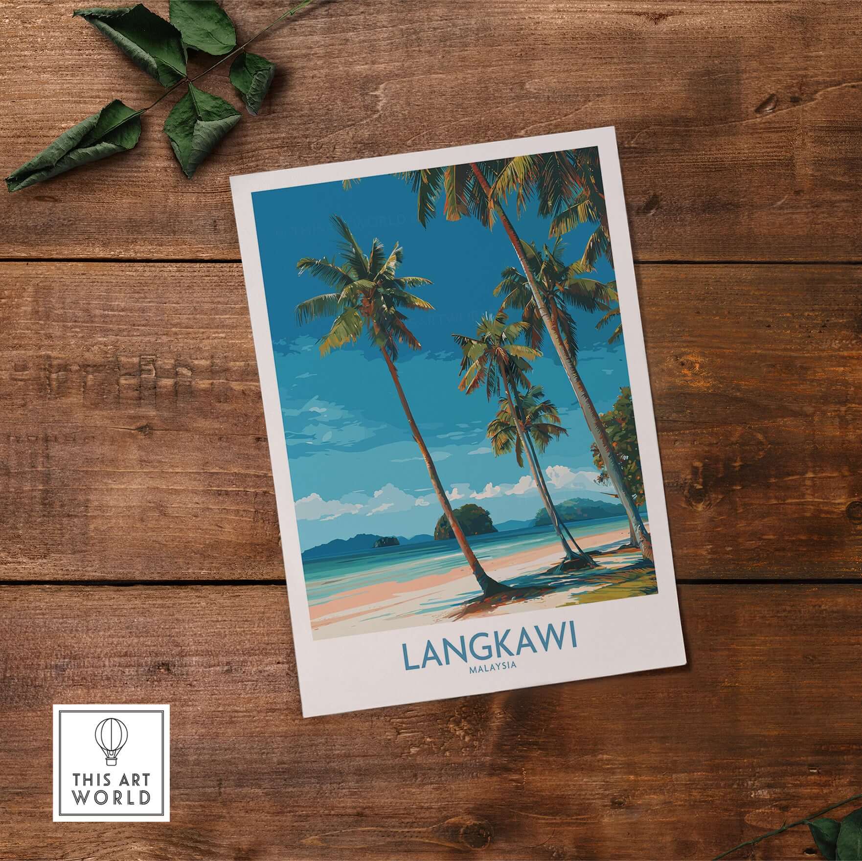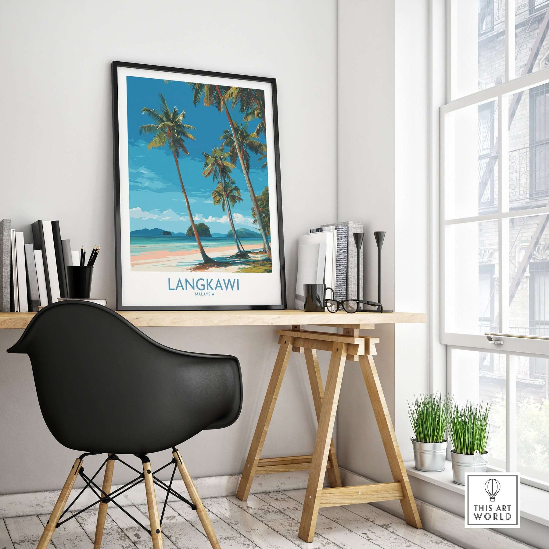 Langkawi Malaysia Print | White Sand Beach Poster displayed in a stylish living space with modern decor.
