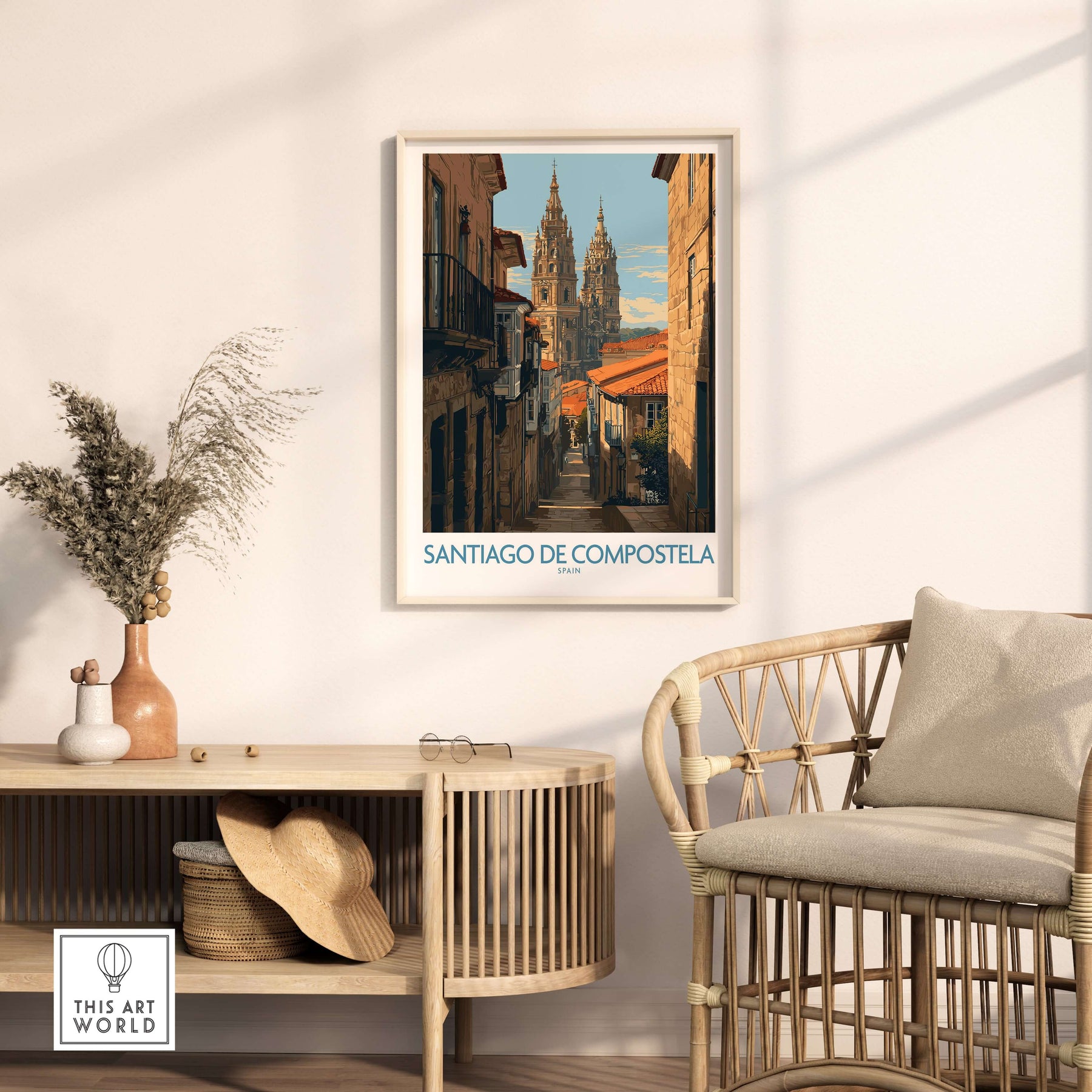 Santiago de Compostela Cathedral Art Print | Historic City Poster displayed in a stylish interior setting.
