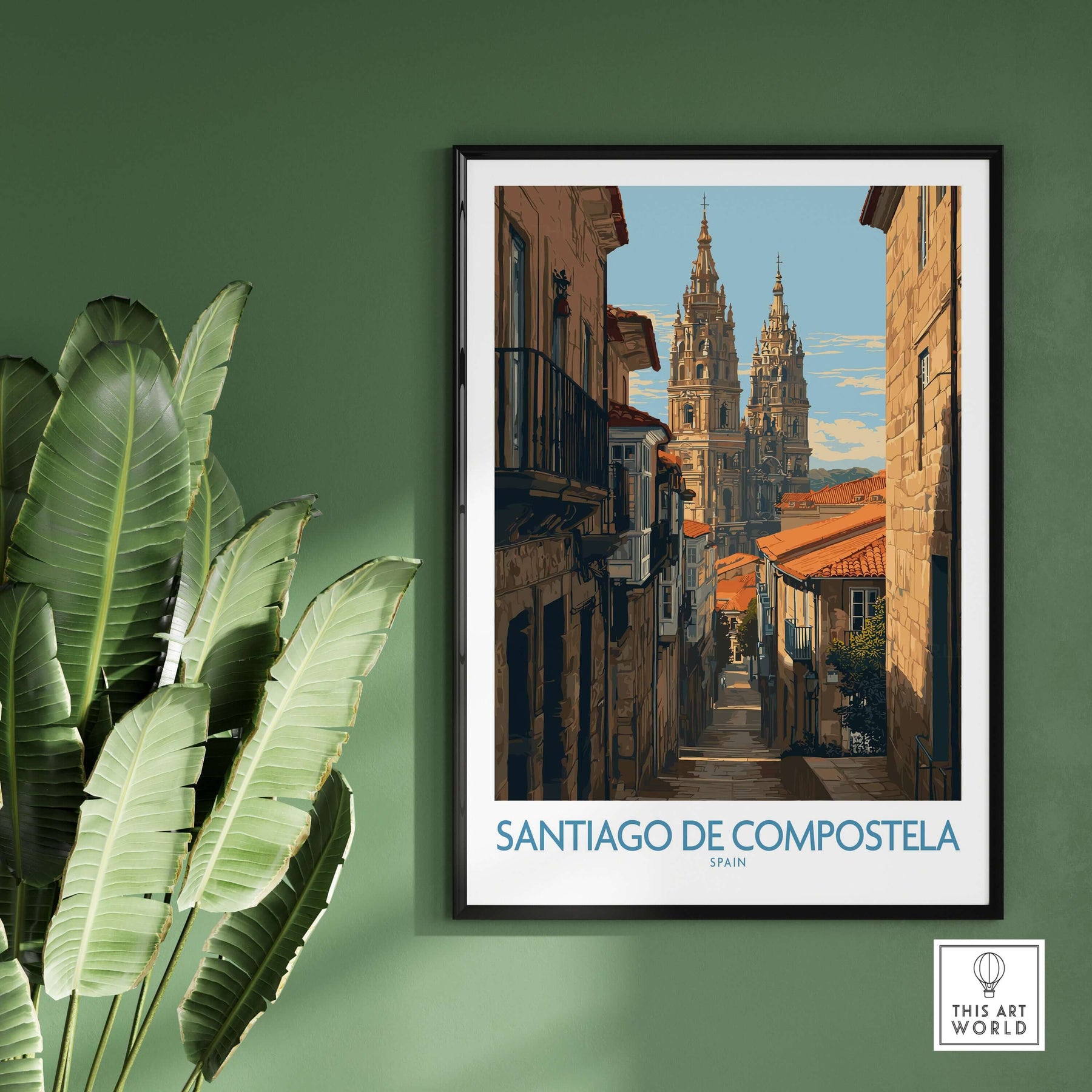 Santiago de Compostela Cathedral Art Print | Historic City Poster showcasing intricate architecture in a stylish interior setting.