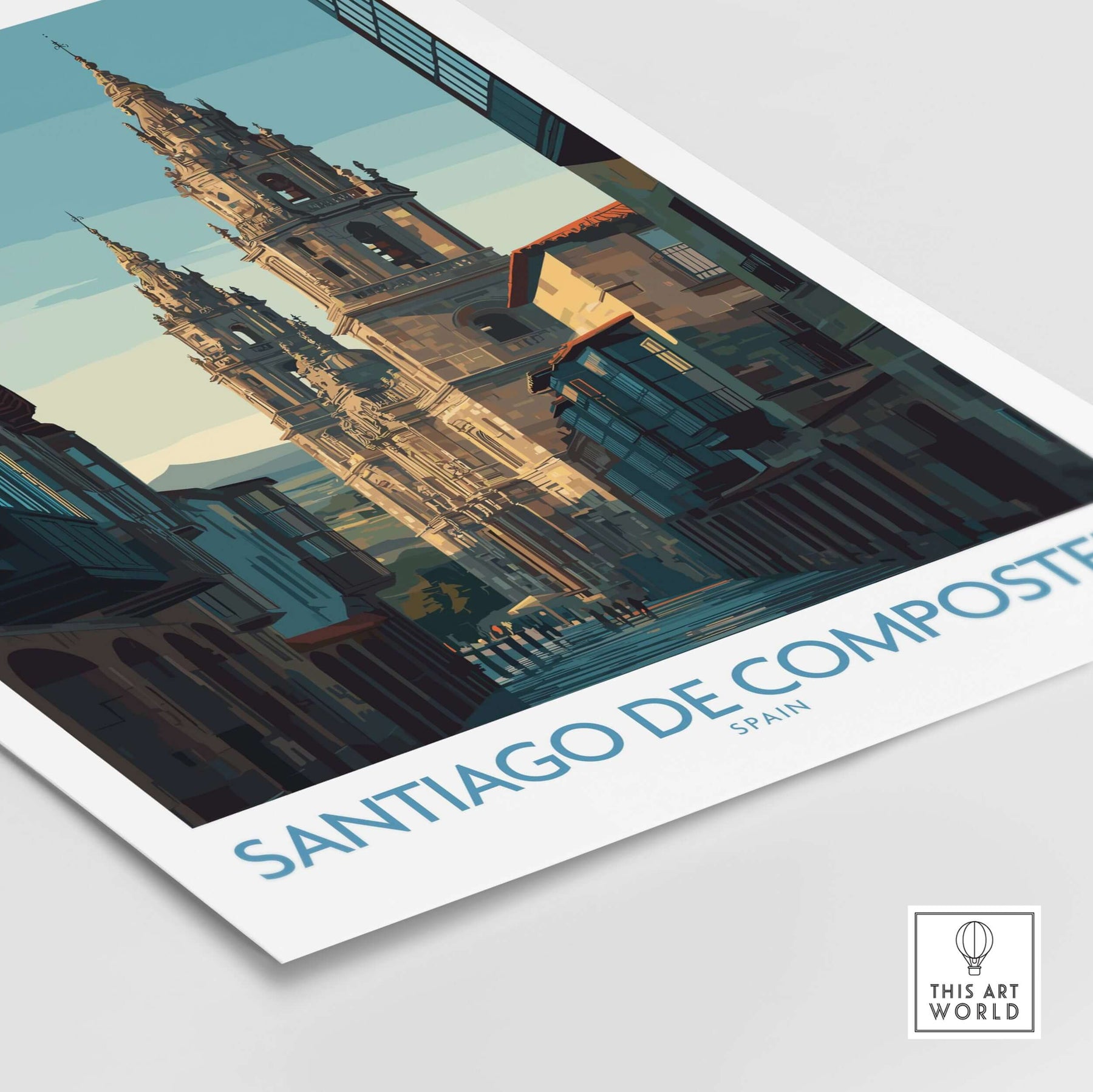Santiago de Compostela Spain Cathedral Street View Art Print | Pilgrim City Poster displayed in stylish home decor setting.