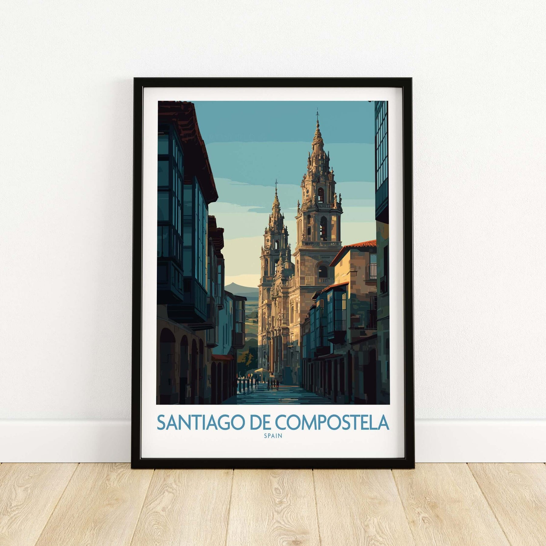 Santiago de Compostela Spain Cathedral Street View Art Print | Pilgrim City Poster size guide display in a cozy interior setting