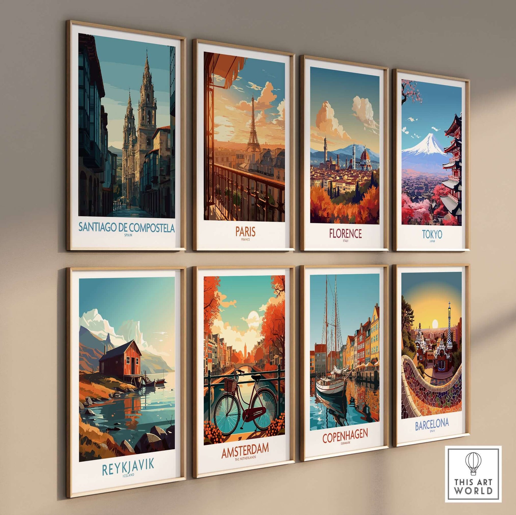 Santiago de Compostela Spain Cathedral Street View Art Print | Pilgrim City Poster displayed among other city art prints.