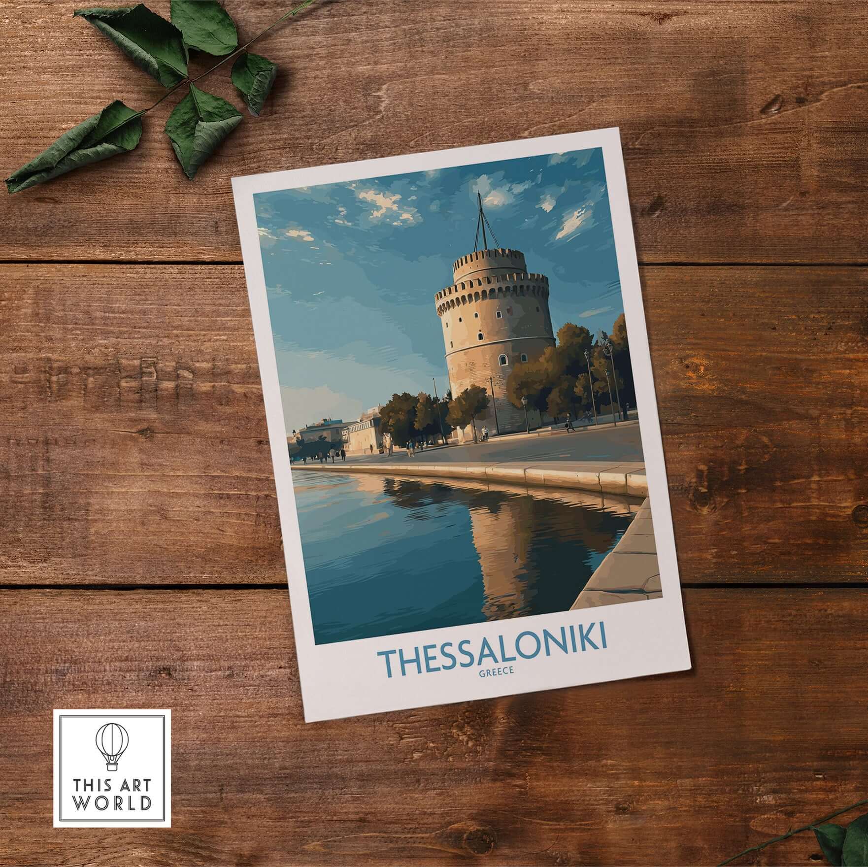 Thessaloniki Greece Print - White Tower of Thessaloniki showcased in elegant decor setting.
