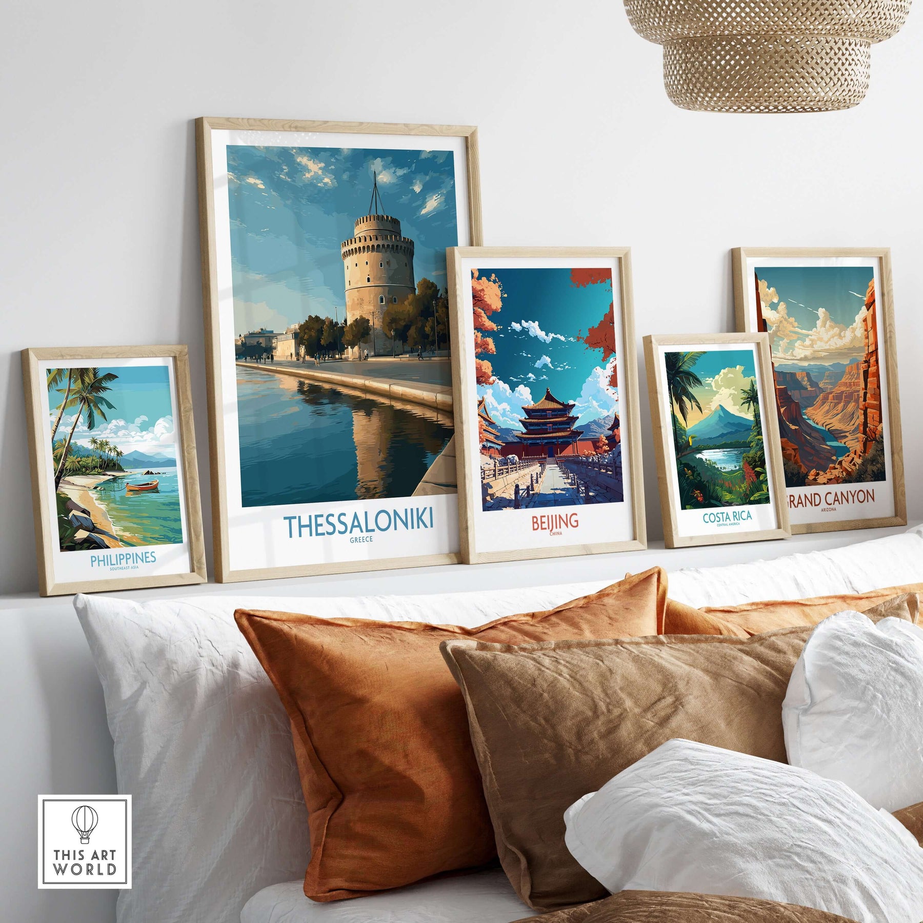 Thessaloniki Greece Print - White Tower of Thessaloniki showcased on a gallery wall with other city prints.