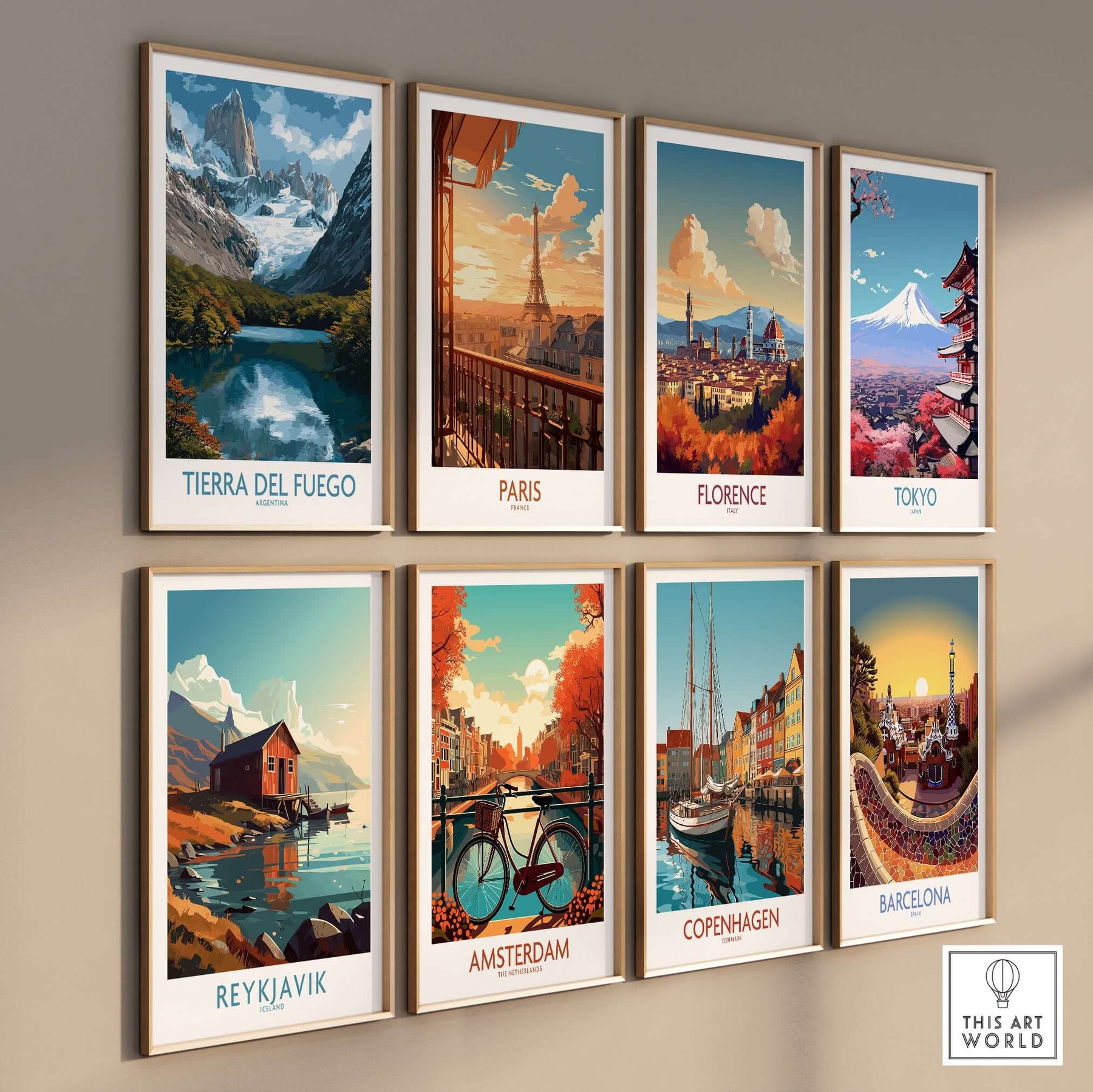 Tierra del Fuego Argentina Fitz Roy Glacier Art Print | Mountain Lake Poster displayed among various city art prints