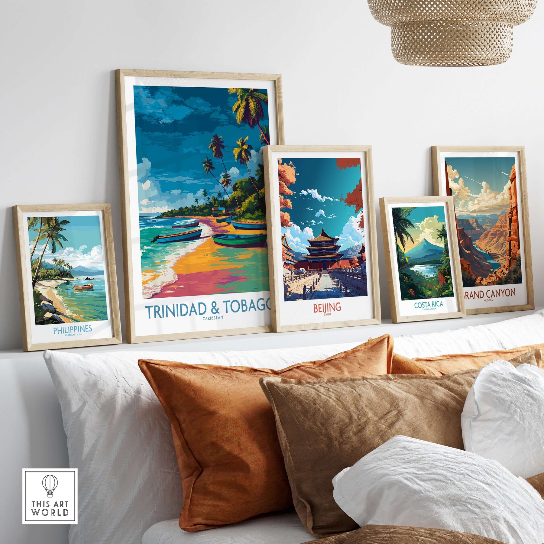 Trinidad & Tobago Print | Tropical Caribbean Poster displayed among travel prints on a stylish wall decor.