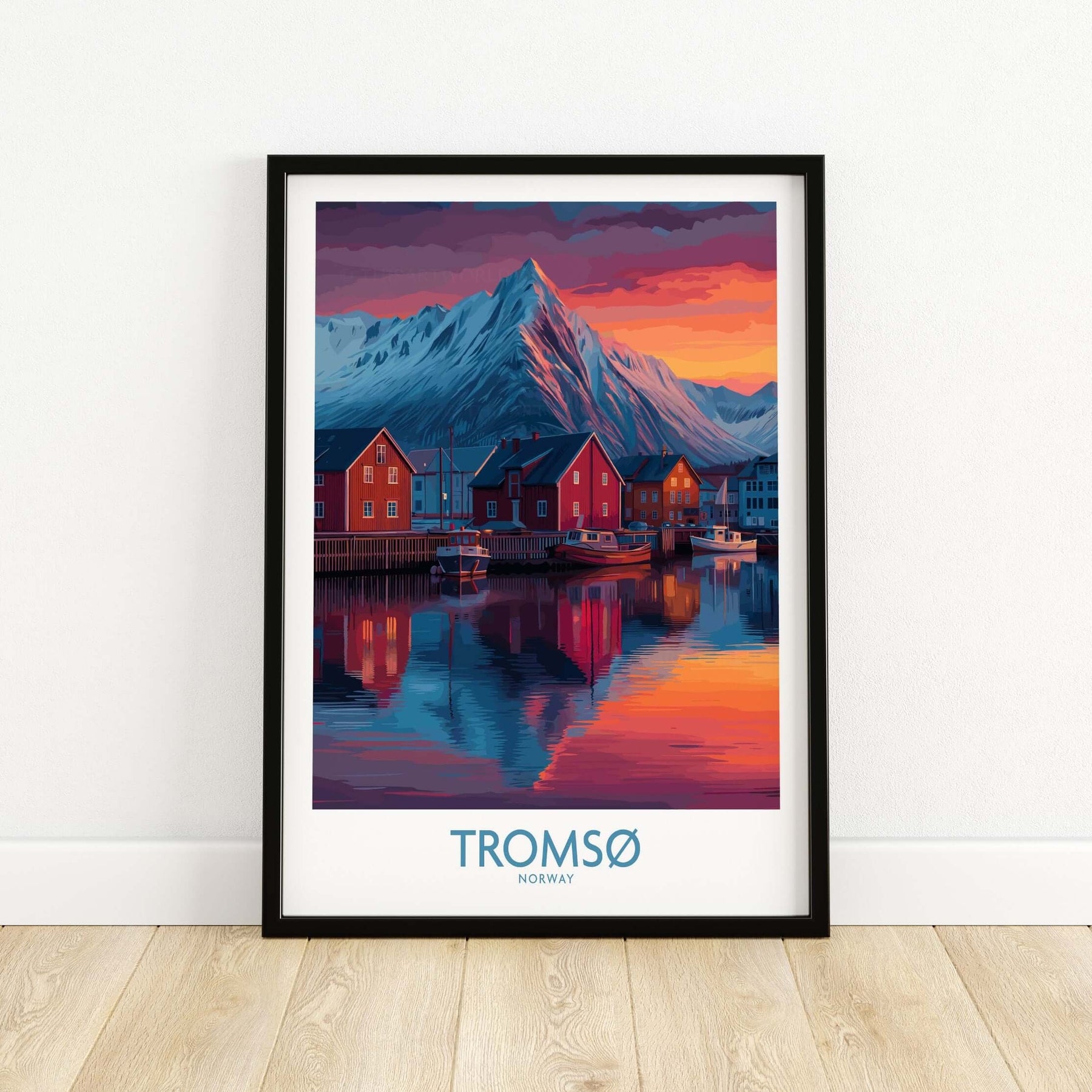 Tromsø Norway Art Print displayed in handmade wooden frames: natural, white, and black options