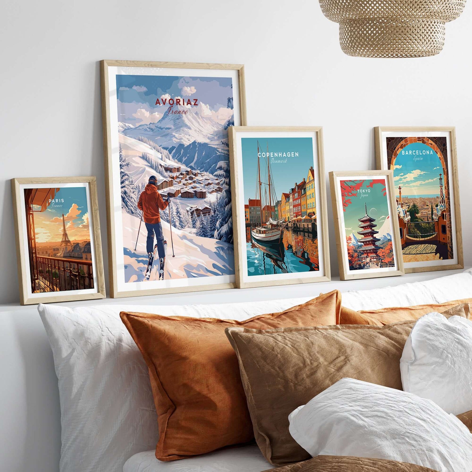 Avoriaz Portes du Soleil Slopes Ski Print | French Alps Wall Decor displayed among other travel art prints.