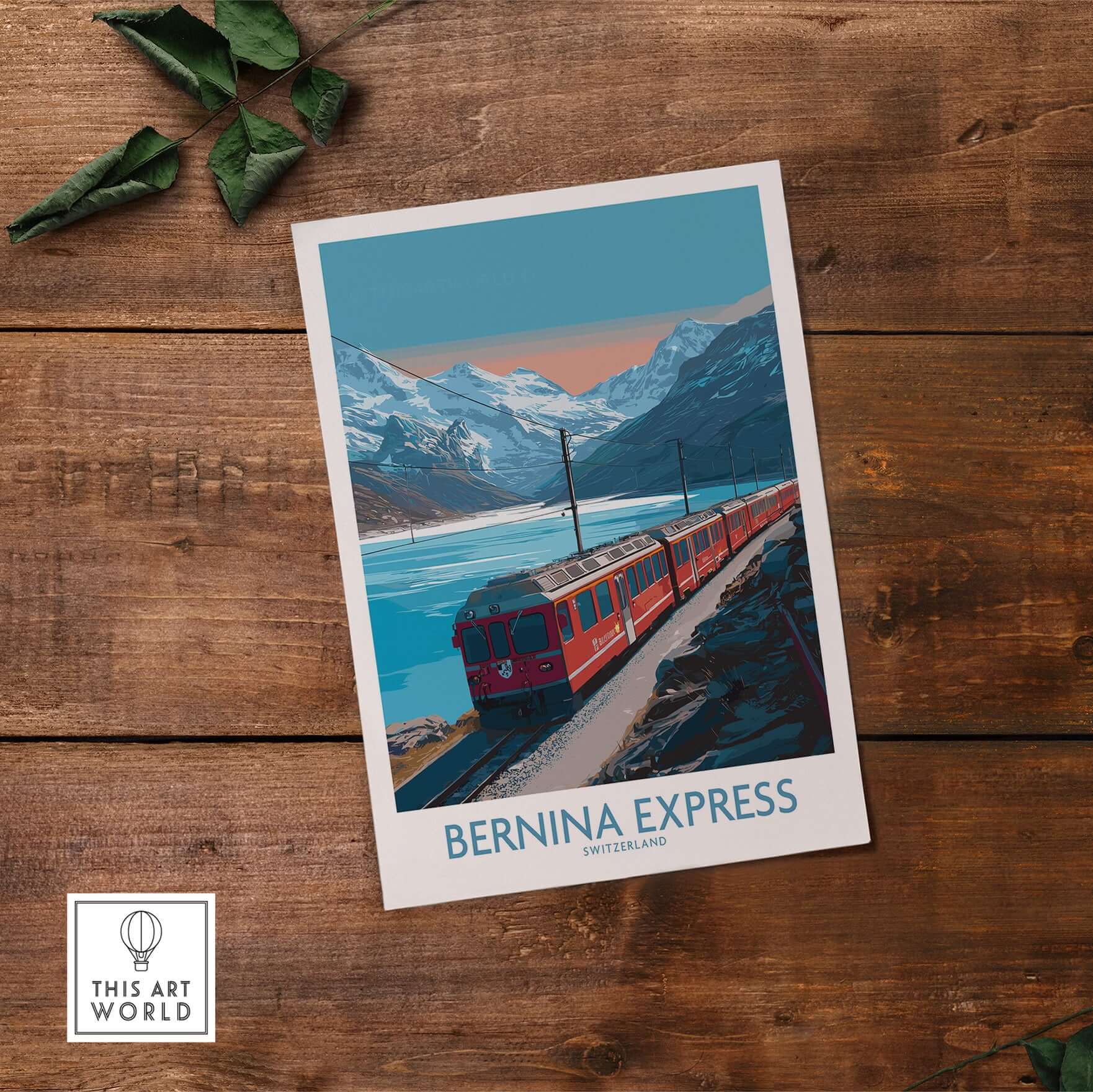 Bernina Express Poster Switzerland Train Art Print | Alpine Rail Journey Poster showcased in a stylish home decor setting.