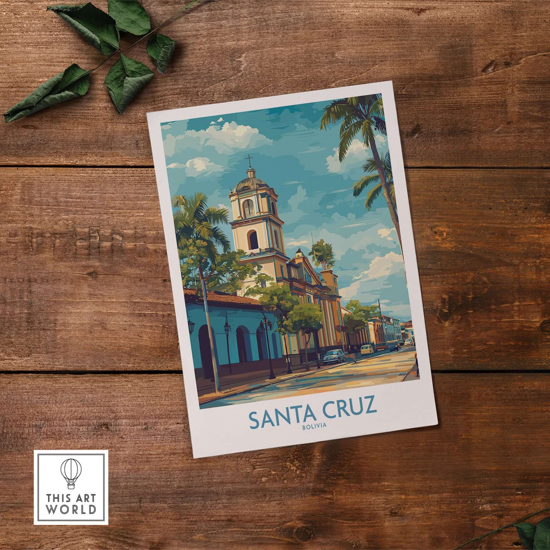Santa Cruz Bolivia Tropical Street Art Print | Historic Church Poster collection of travel destination art prints on wall