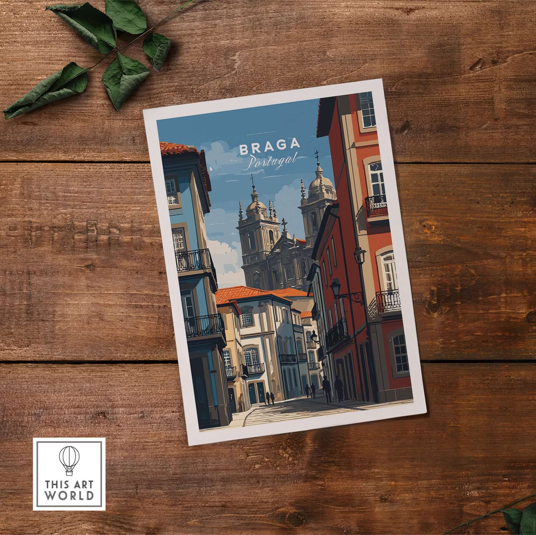 Braga Historic Centre Print | Portuguese Urban Wall Art showcasing Braga's vibrant architecture and cultural heritage.