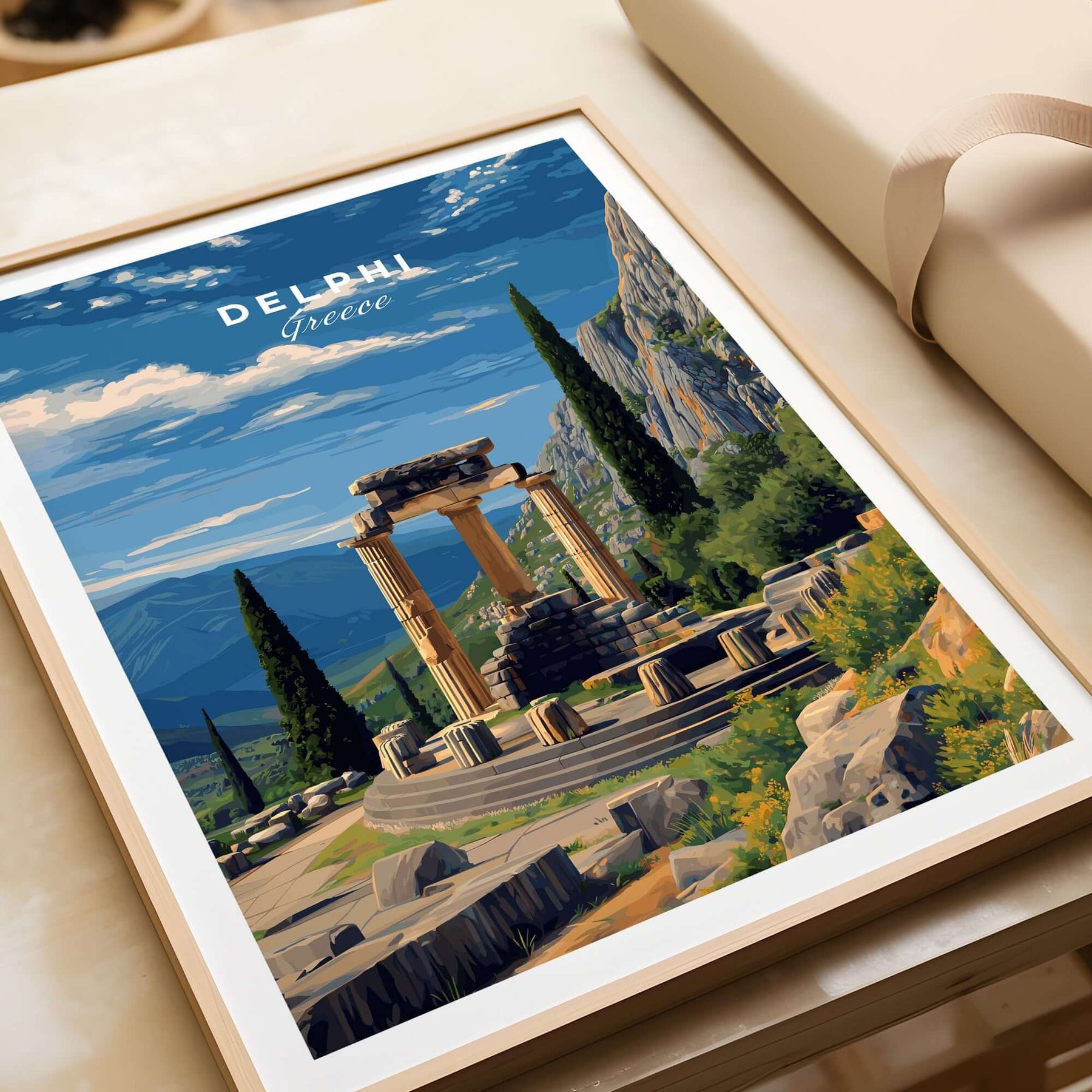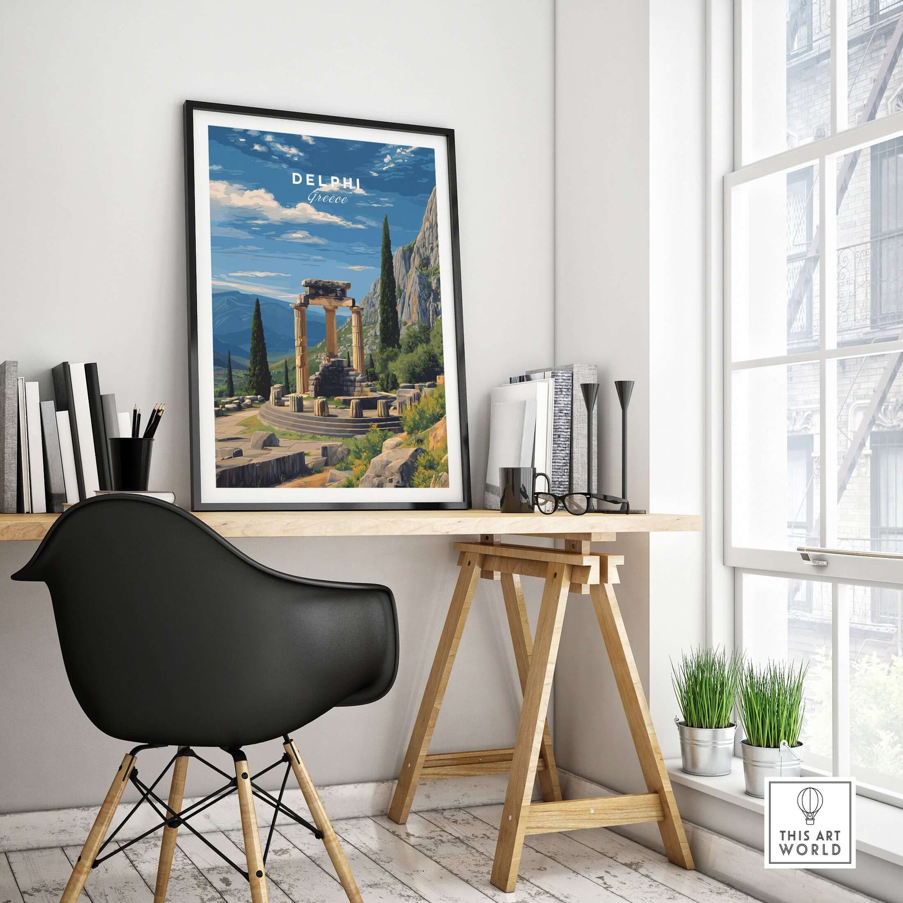 Delphi Print | Historic Greek Wall Decor displayed in a sunlit room, showcasing iconic ruins and natural beauty.
