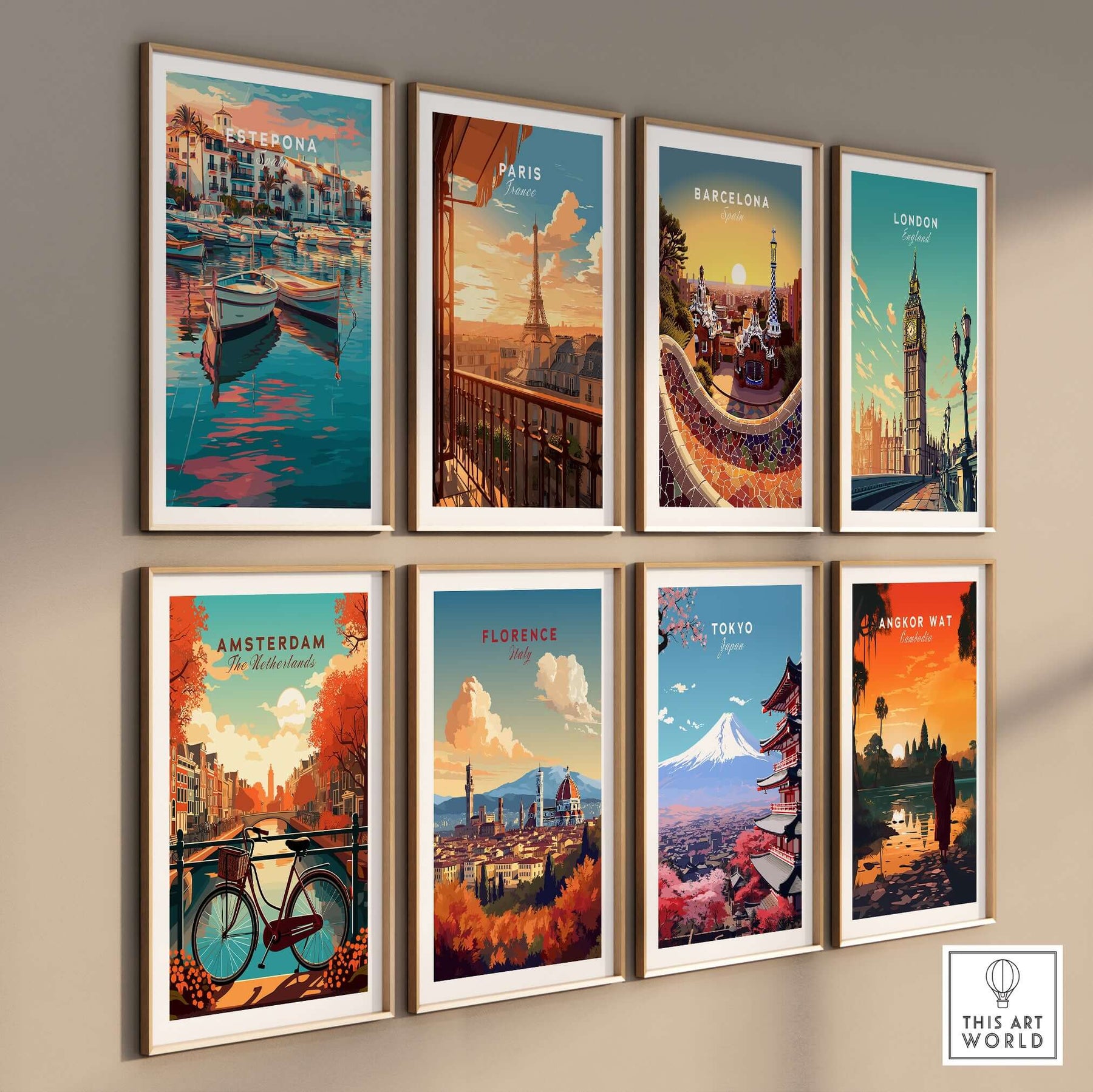 Estepona Boats Harbour Reflection Print | Mediterranean Wall Decor showcased among various city posters.