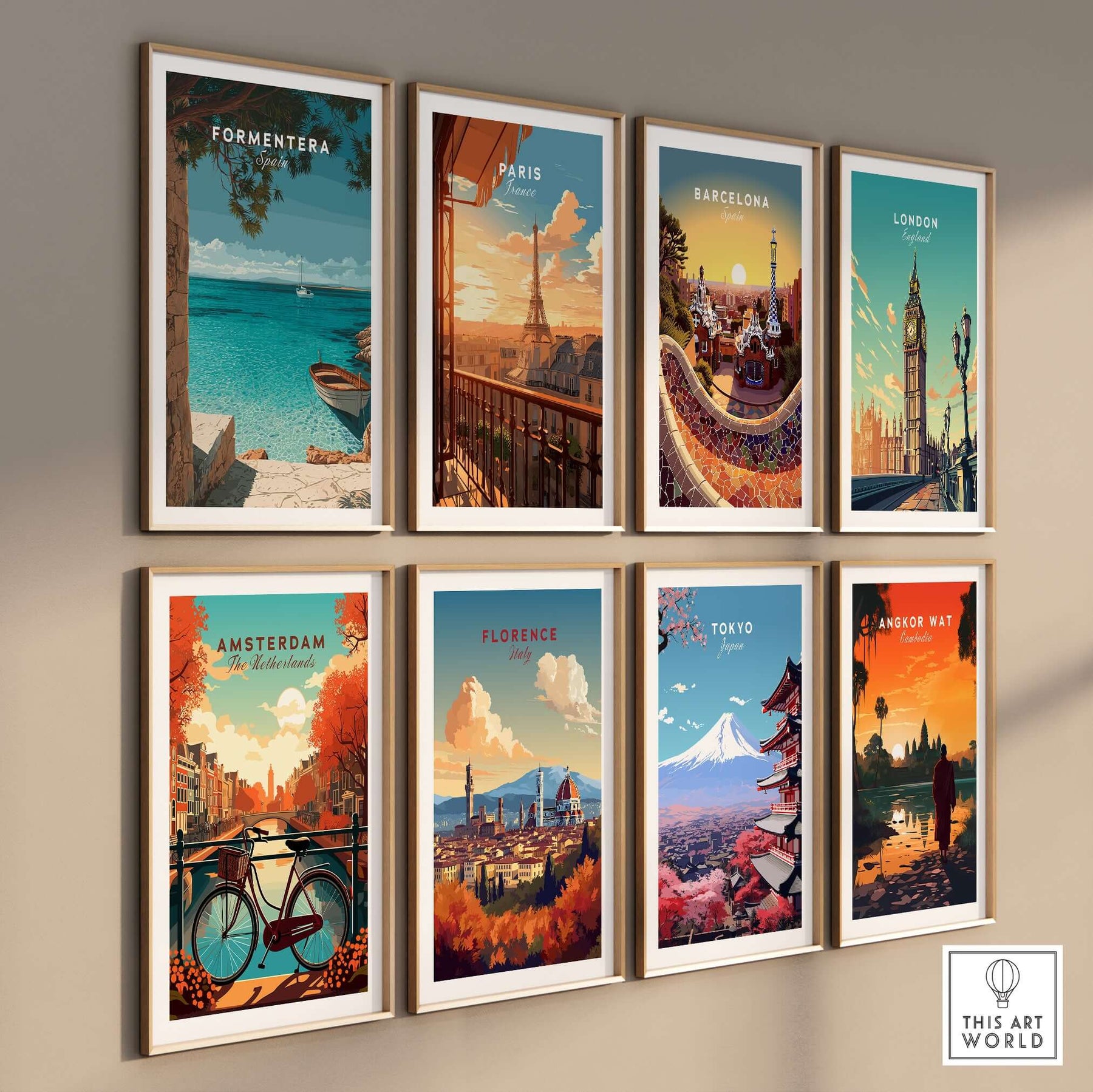 Formentera Balearic Island Seascape Print | Tranquil Coastal Decor showcased in a framed collection of travel art prints.