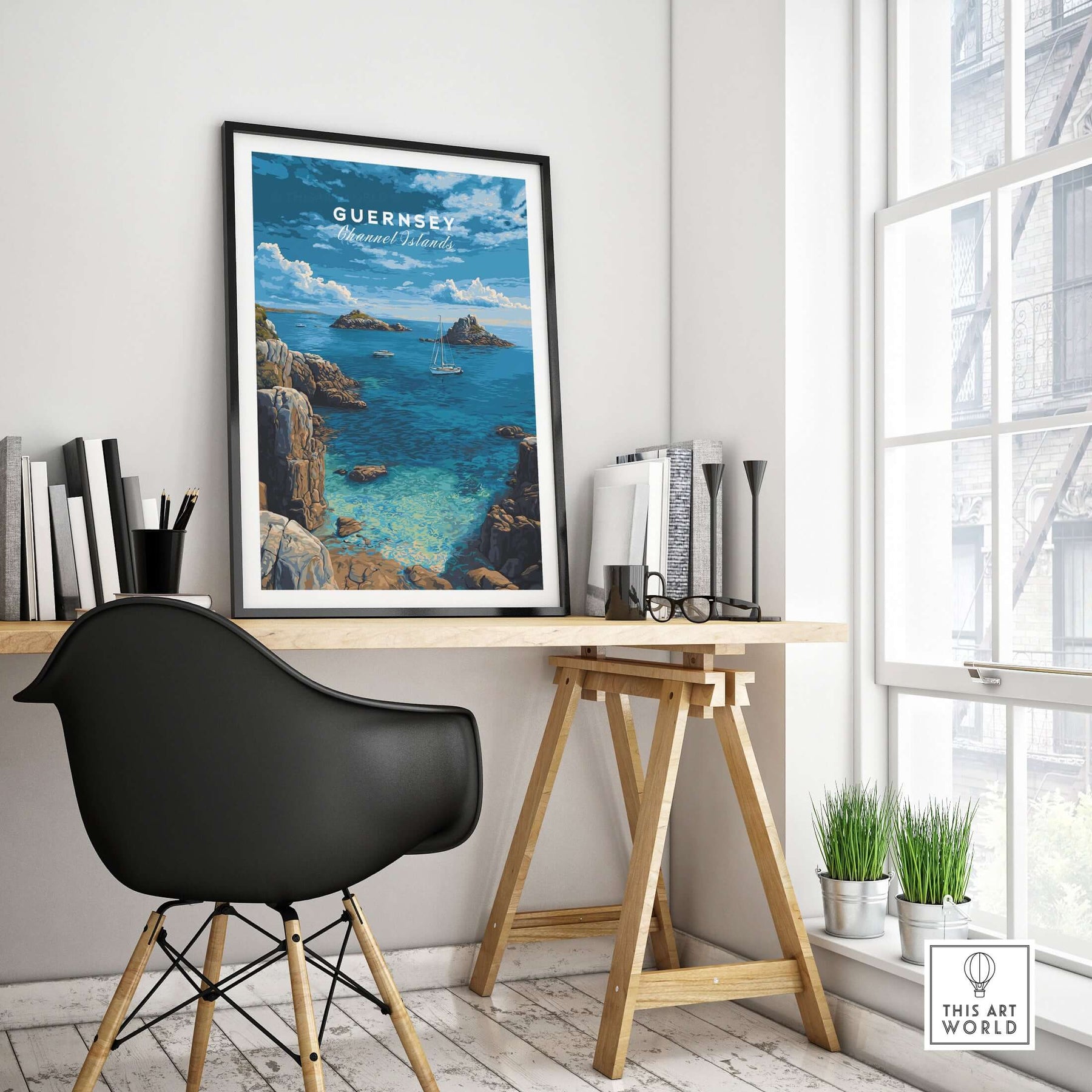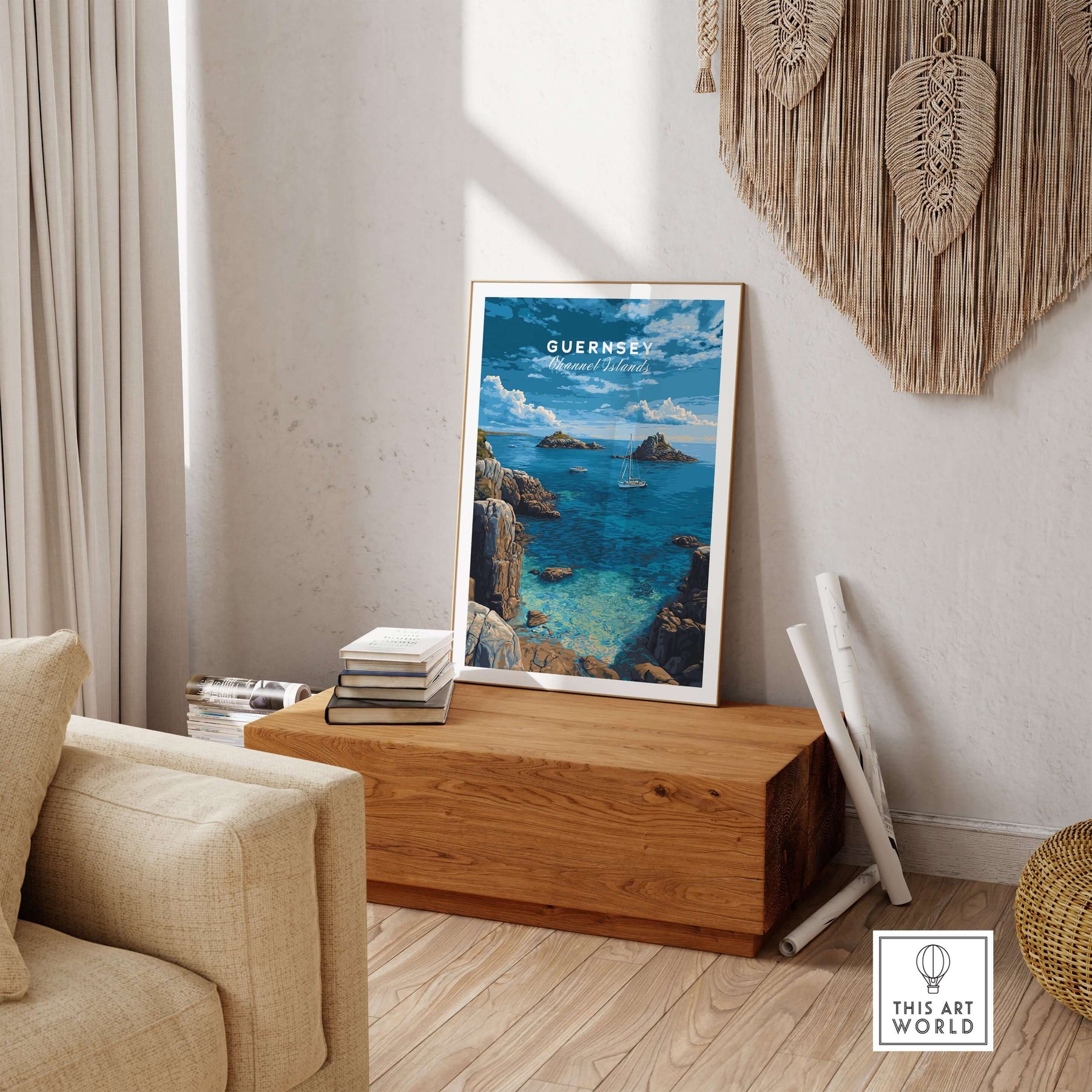 Guernsey Print | Channel Islands Wall Decor showcasing coastal beauty in a stylish interior setting.
